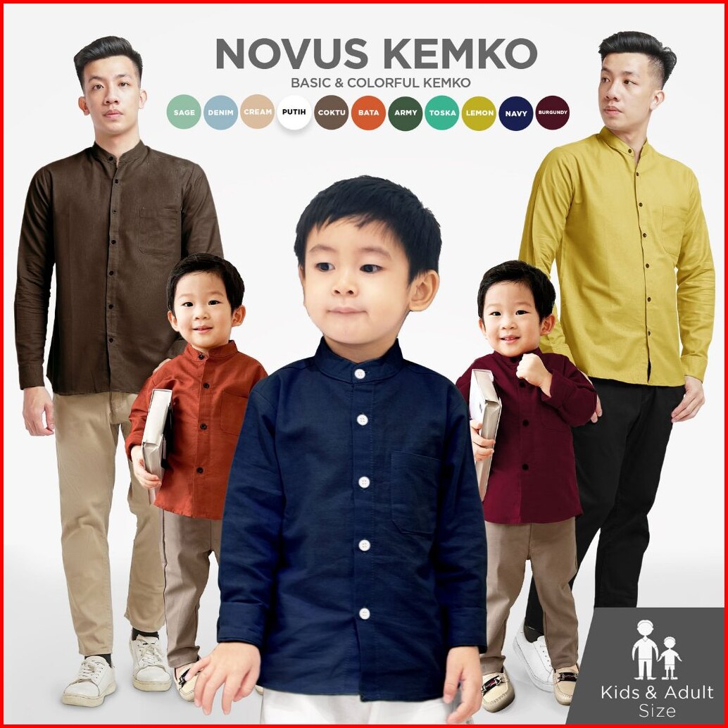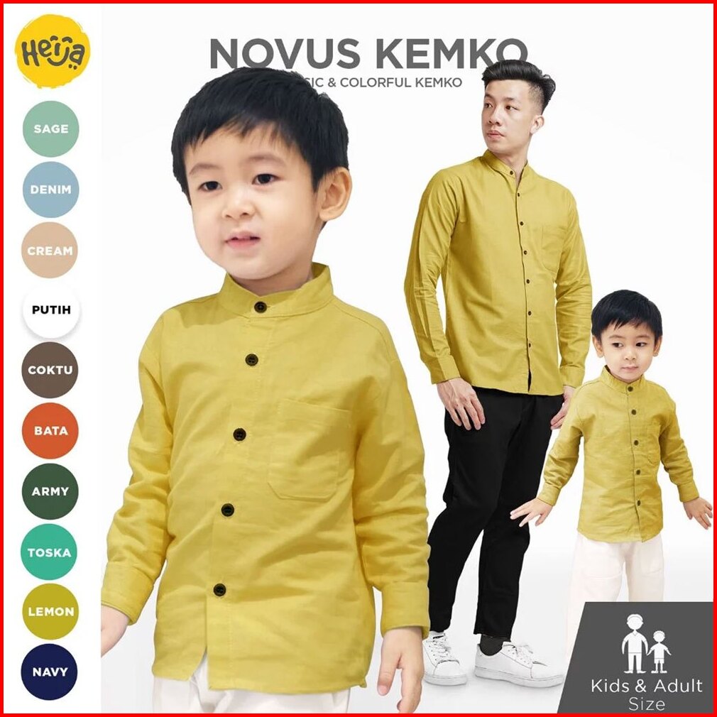 Kemeja Koko Anak Lengan Panjang Kancing Warna Polos Couple Ayah Anak Dewasa Novus Shirt Heija - Koleksi Warna 2