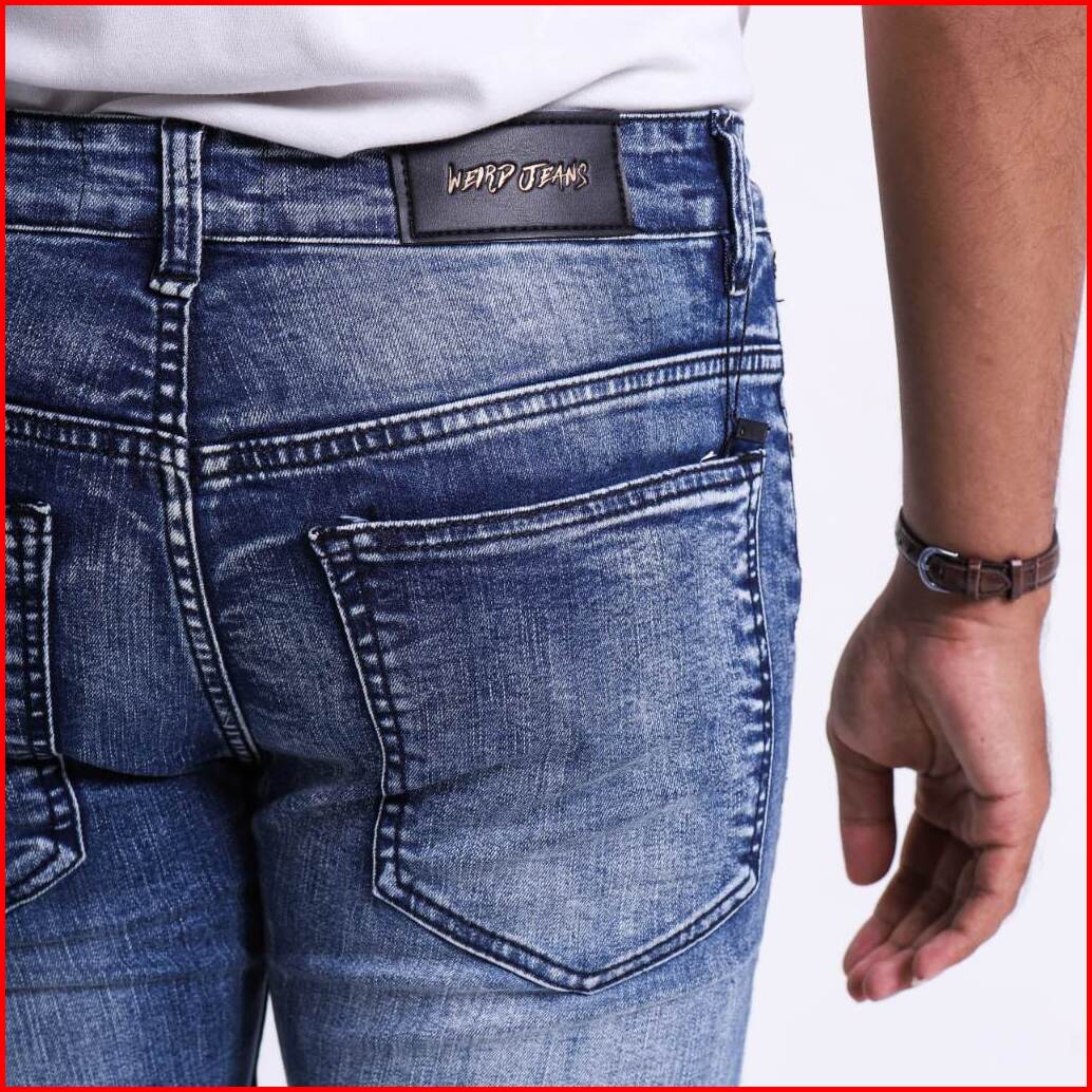 Weird Jeans - Biker Blue Ocean - Celana Jenas Denim Panjang Pria Slim Fit Strech Polos