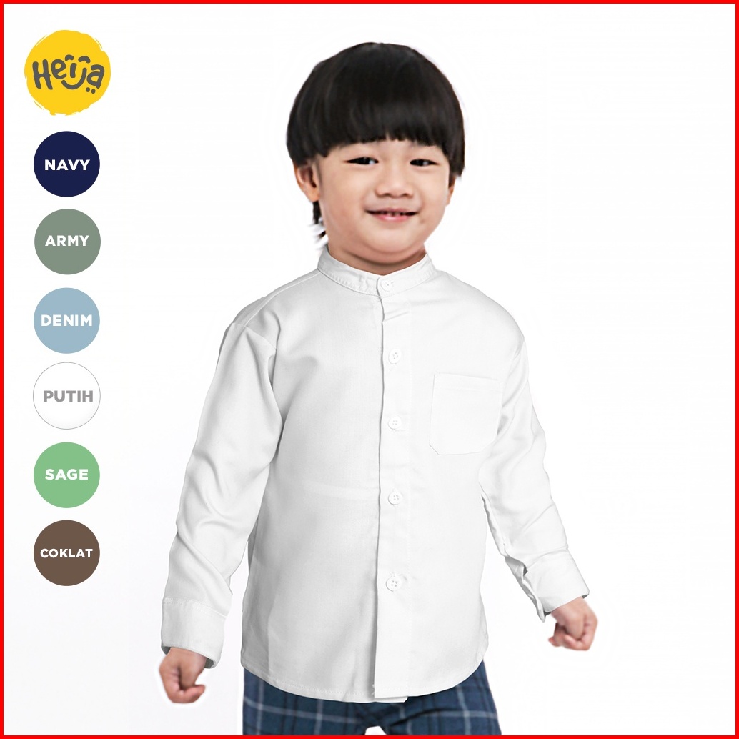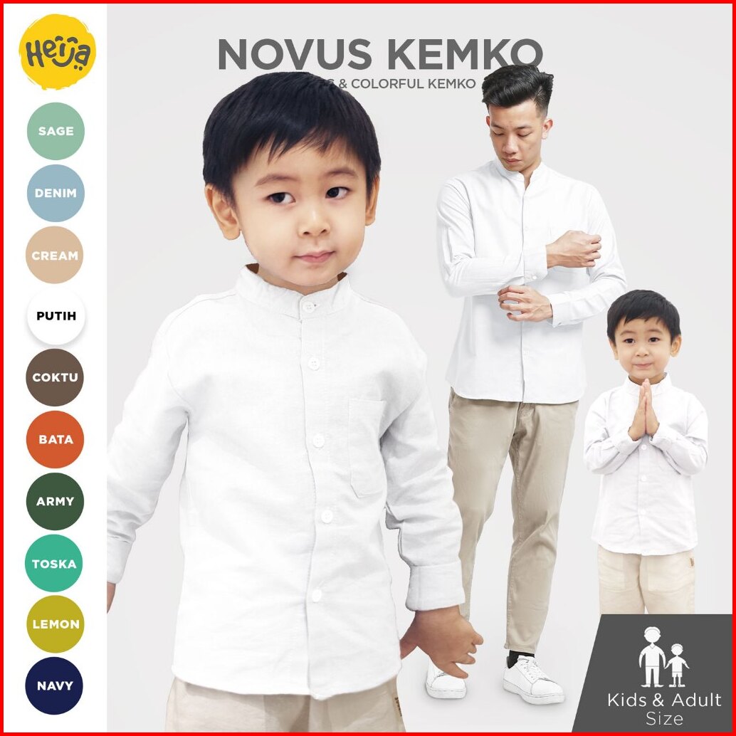 Kemeja Koko Anak Lengan Panjang Kancing Couple Ayah Dewasa - Putih Bersih Novus Shirt Heija