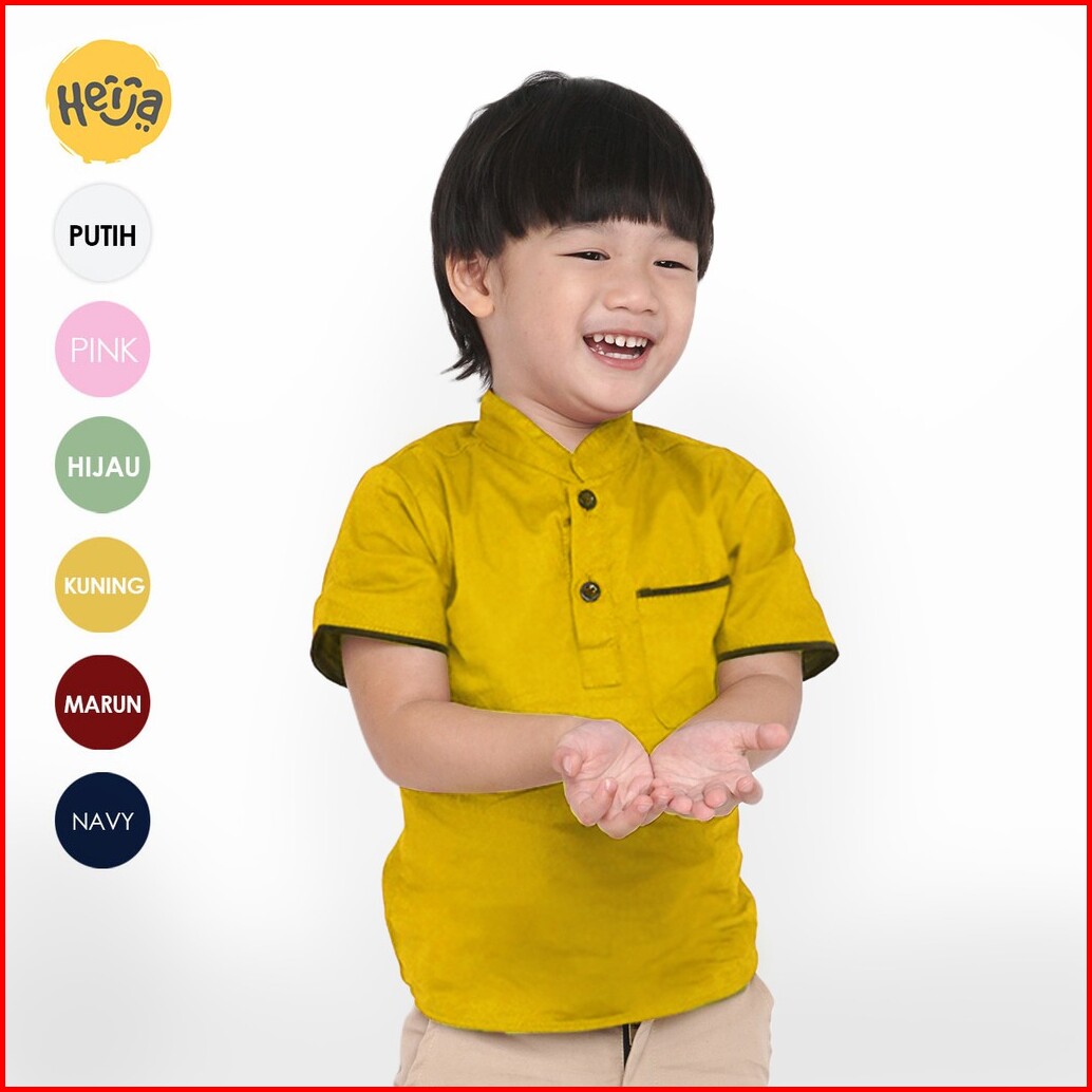 Kemeja Koko Anak Lengan Pendek Kuning Mustard Kunyit Kopen Heija