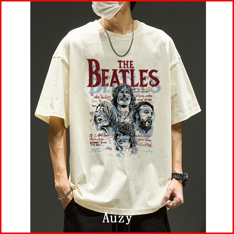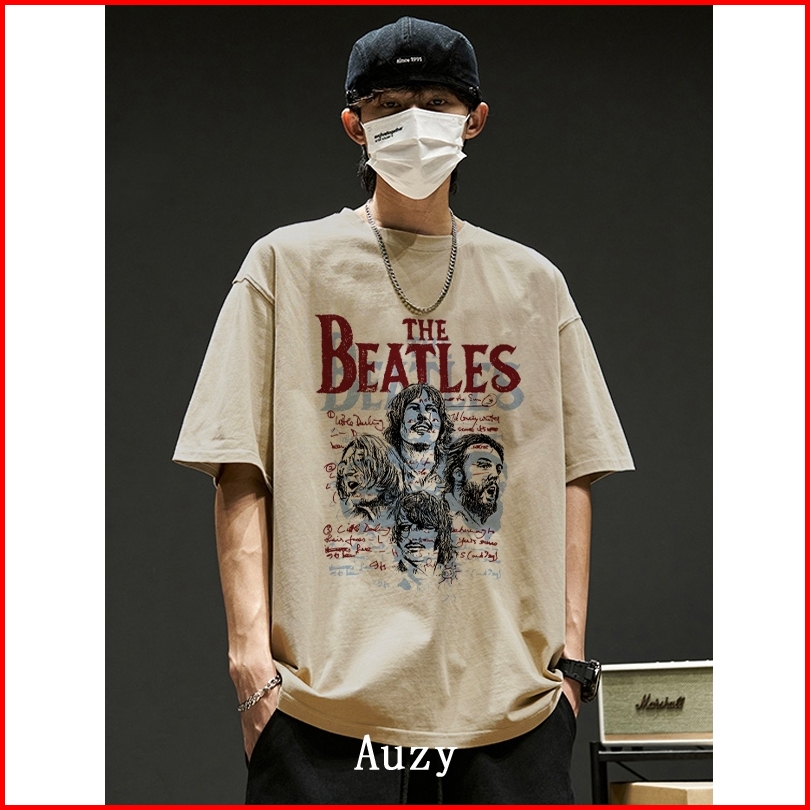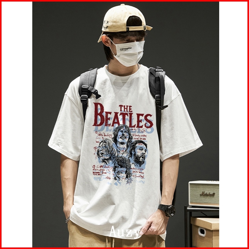 Auzy Grup Musik Rock Retro The Beatles Kaos Pria Wanita Atasan Lengan Pendek T-shirt Skena Baju Oversize T Shirt Distro