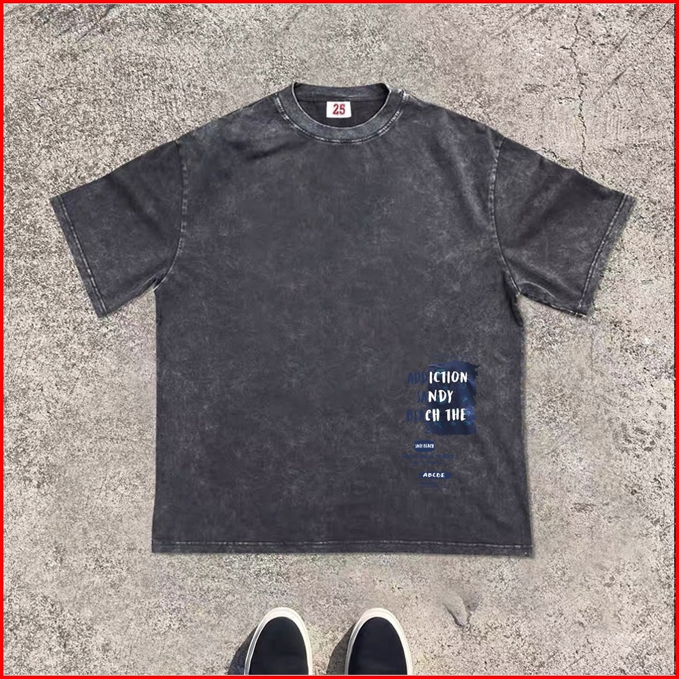Boombap American Retro Style T-shirt Oversize Original Hip-hop Print Trendy Hot Style Blue Graffiti Letters Kaos Wanita