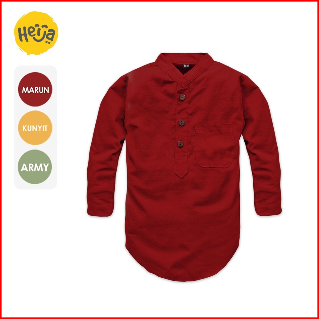 Kemeja Koko Anak Kurta Lengan Panjang Umur 1-13th Remaja Couple Ayah Dewasa - Merah Maroon Heija Kids