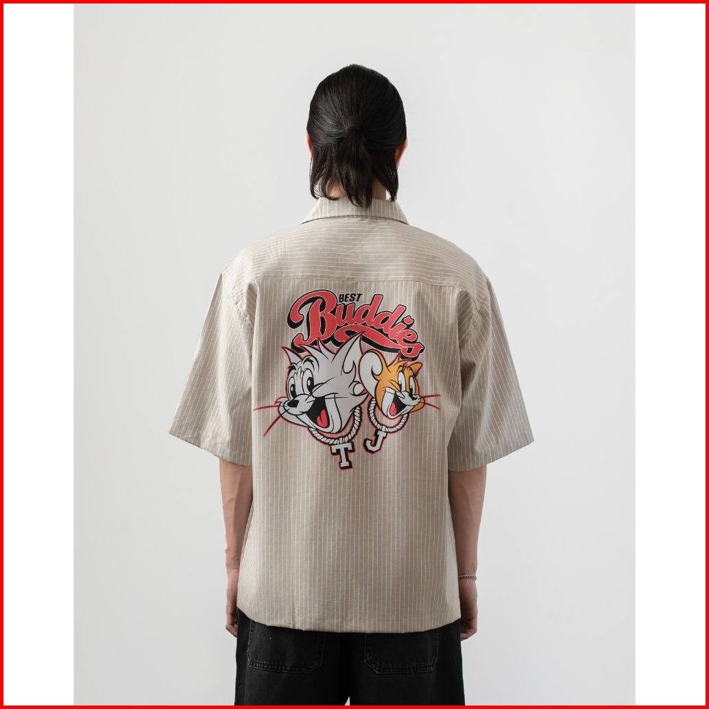 Thesilversky Tj Boxy Buddies Stripe Shirt Kemeja Resort Pria Tom Jerry