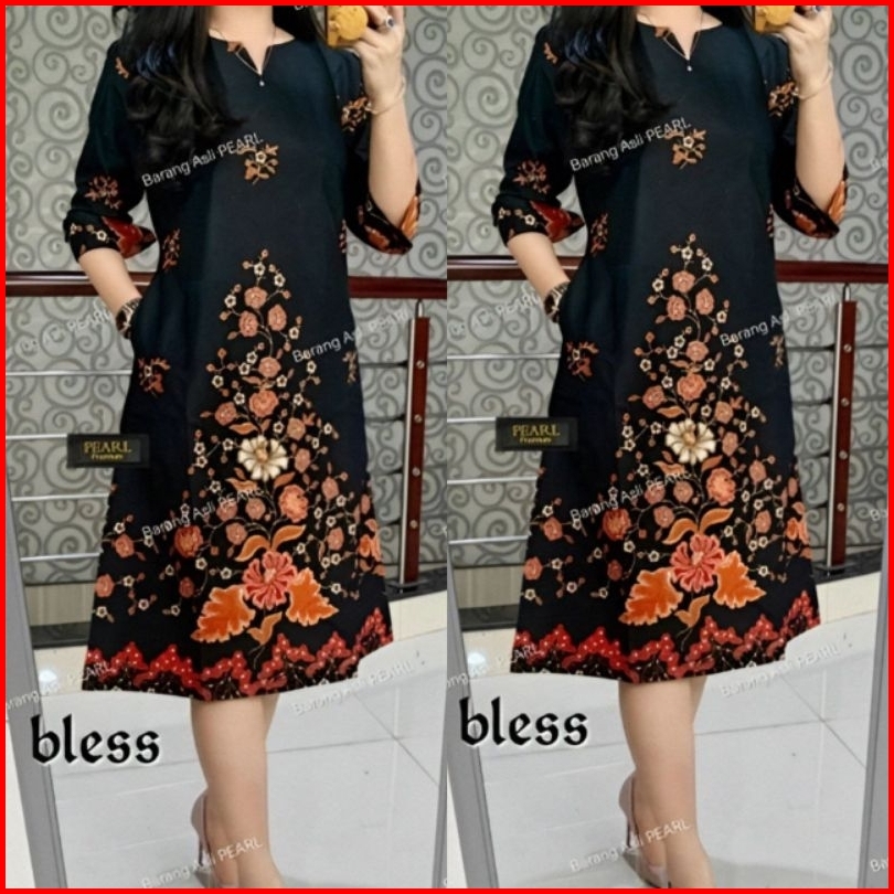 Dress Wanita Lengan Pendek Tunik Batik Spesial Warna Hitam Elegan