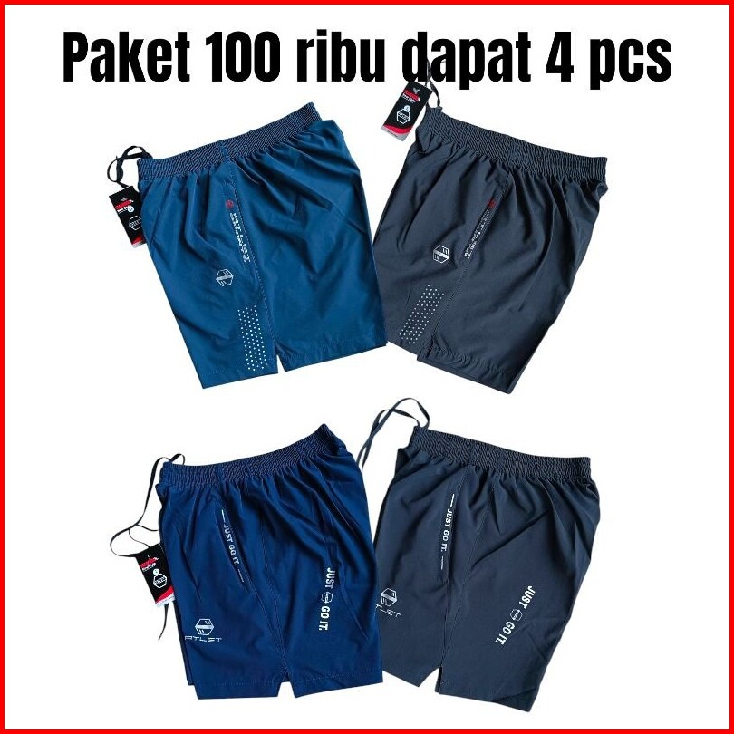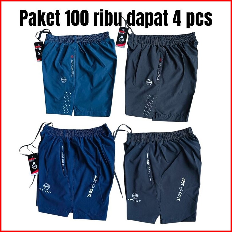 Paket 100ribu Dapat 4pc Celana Pendek Running Pria Gym Jogging Volly Futsal Olahrga