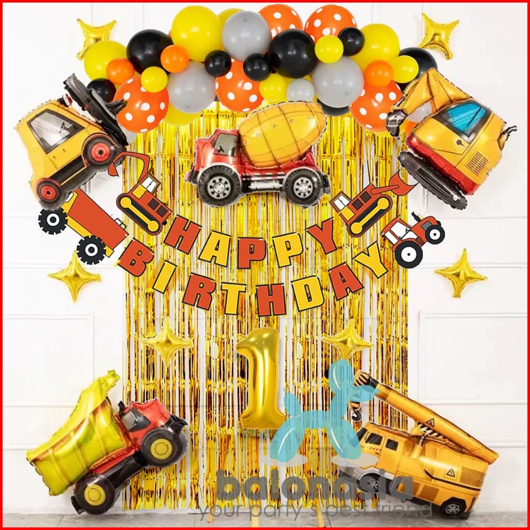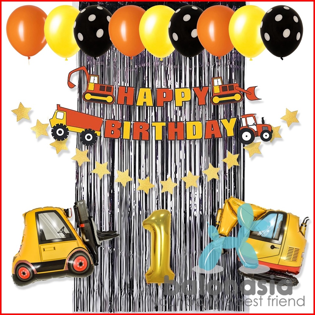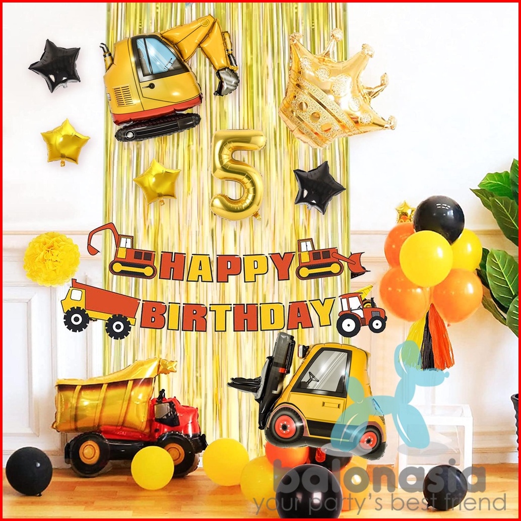 Paket Dekorasi Konstruksi Excavator Ulang Tahun Anak