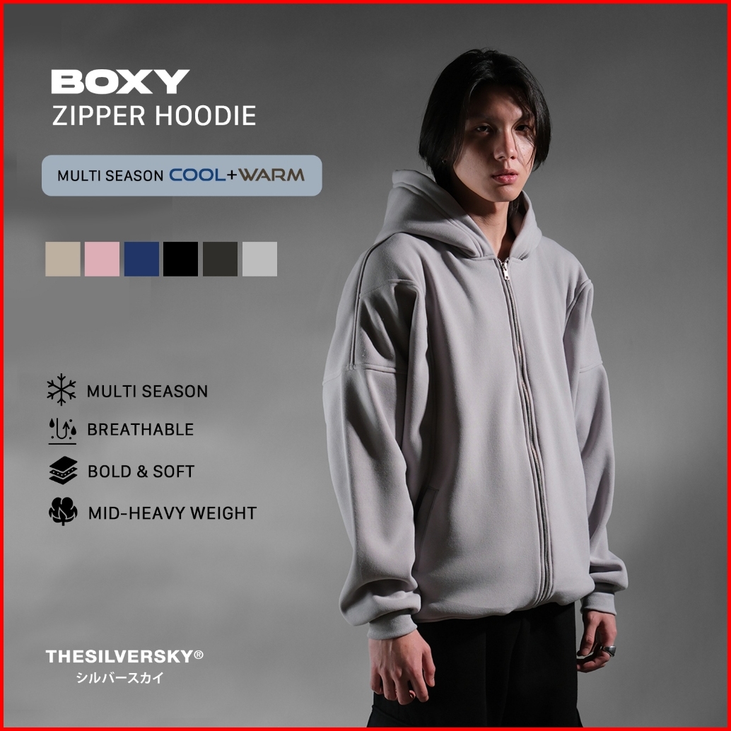 Thesilversky Boxy Zipper Hoodie Premium Pria Wanita Polos