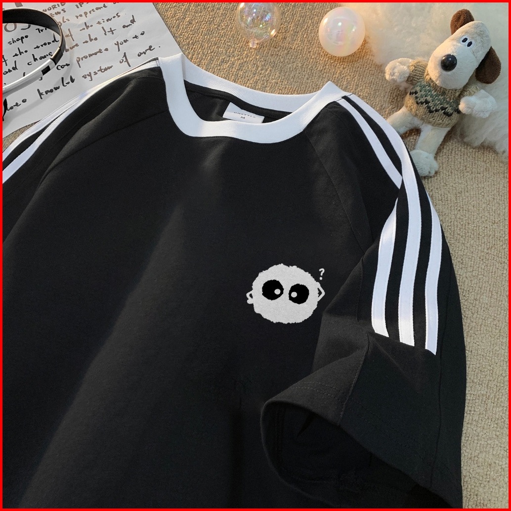Forteid Cetakan Merek Trendi Retro Baju Oversize Bola-bola Batu Bara Kecil Lucu Korean Style Kaos Longgar Kaos Merah Put