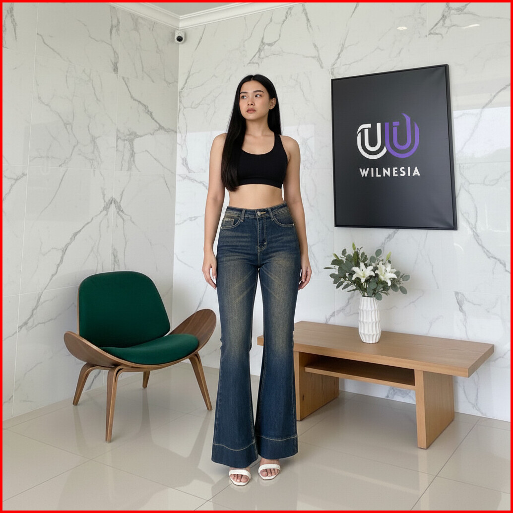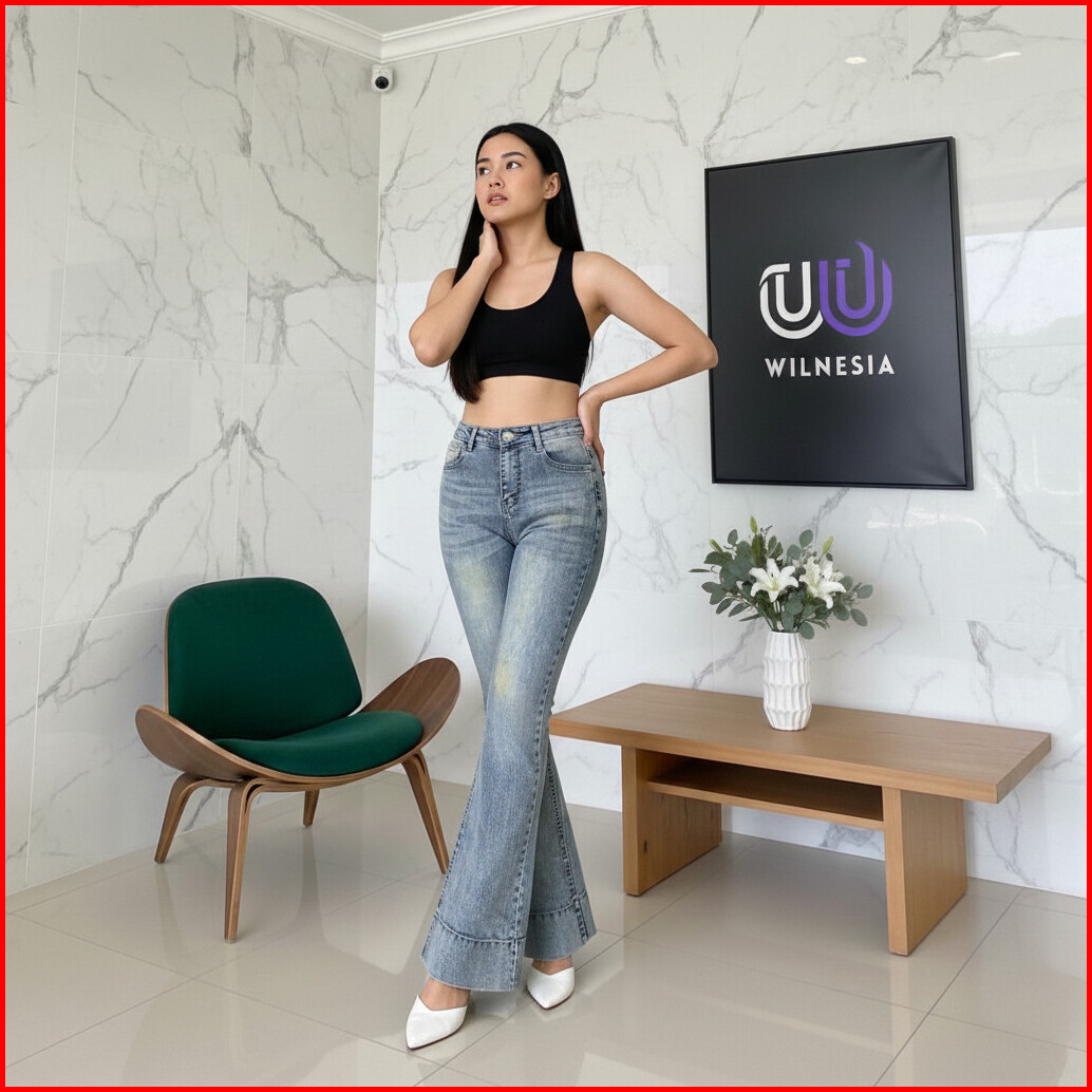 Wilnesia Cutbray Jeans Higwaist Lipat Besar Jeans Strech Kekinian Wanita Tinggi Terbaru