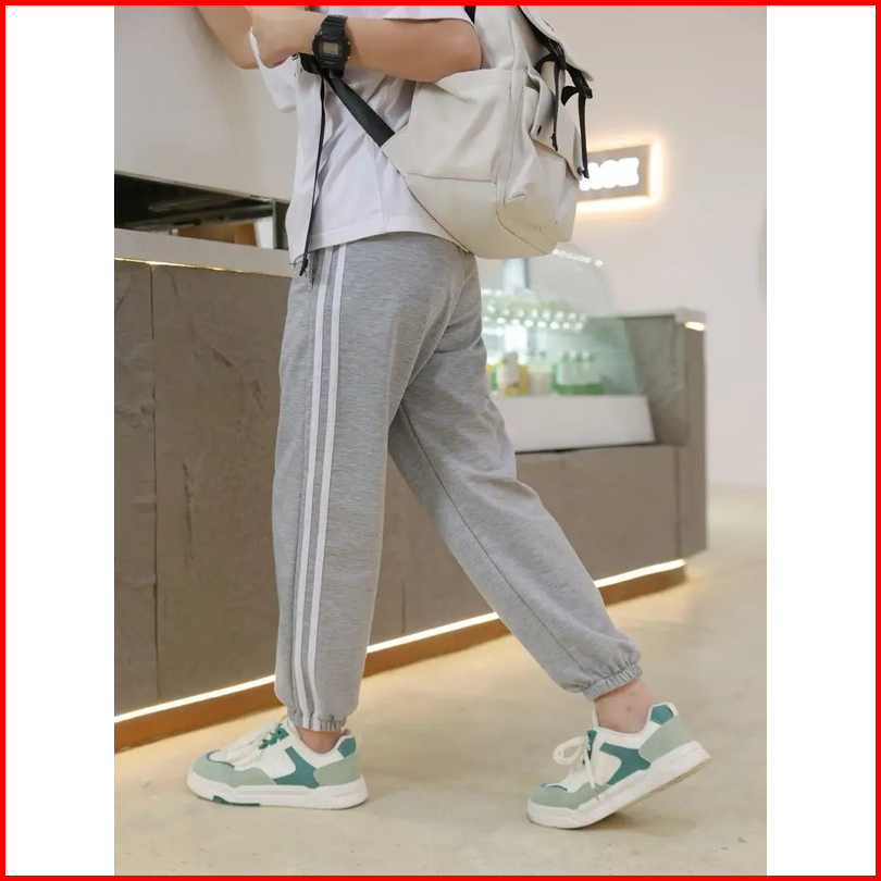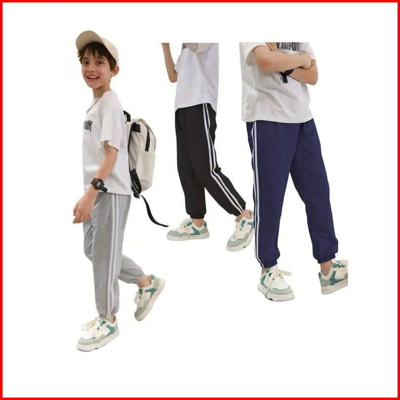 Celana Olahraga Garis Samping Anak Celana Jogger Pinggang Elastis Kasual Pakaian Olahraga Anak Laki-laki Sport