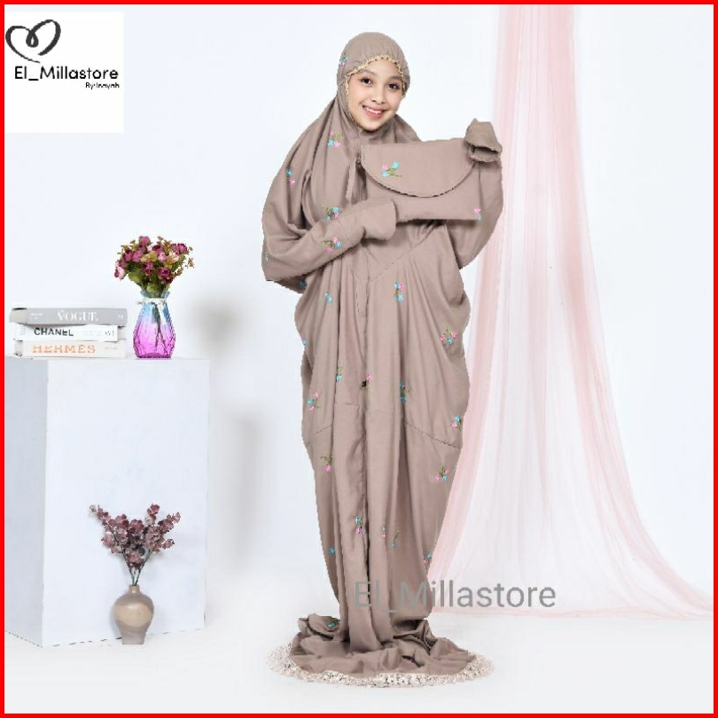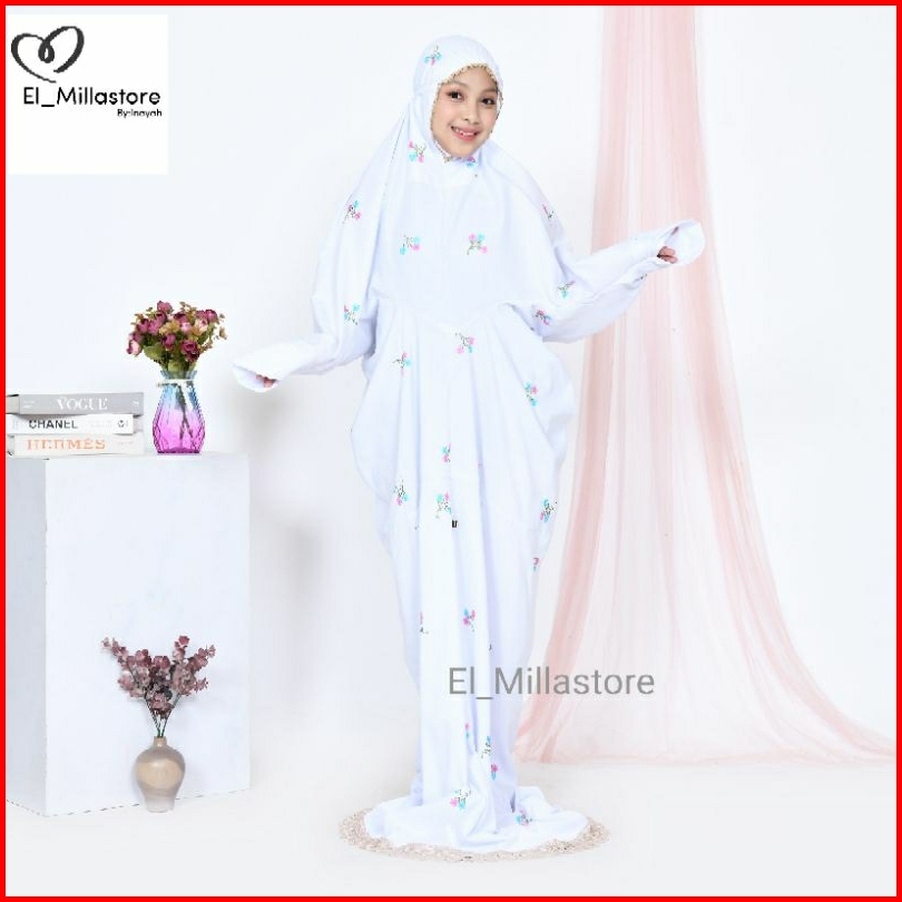 Mukena Anak Terusan Remaja Tanggung Katun Premium Bordir Bunga Vinca