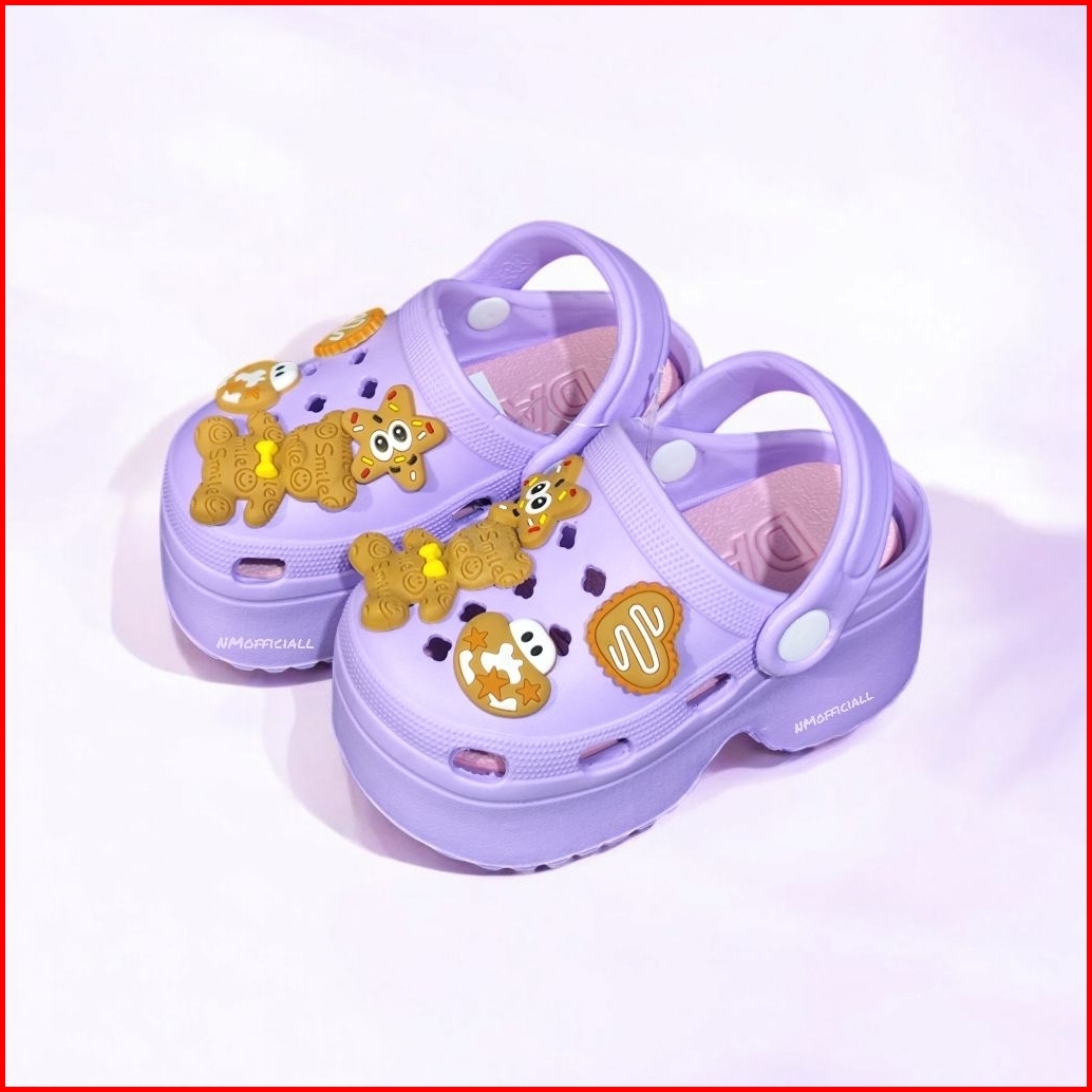 Sandal Anak Perempuan Baim Tebal Karet Eva Non Slip Fashion Warna Pink Jibbitz Bear Sendal Slop Anak Cewek Tali Belakang
