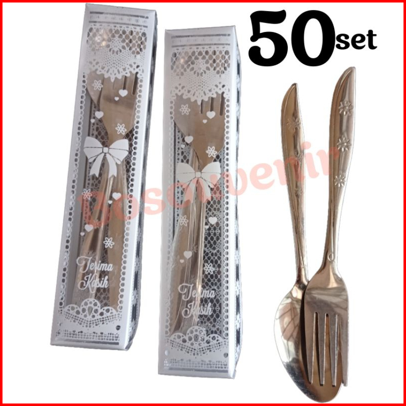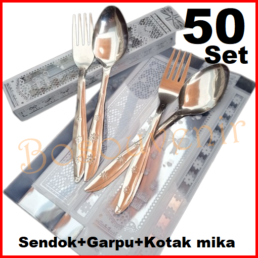 Isi 50 Set Sendok Garpu Bintang Mika Motif Souvenir Pernikahan