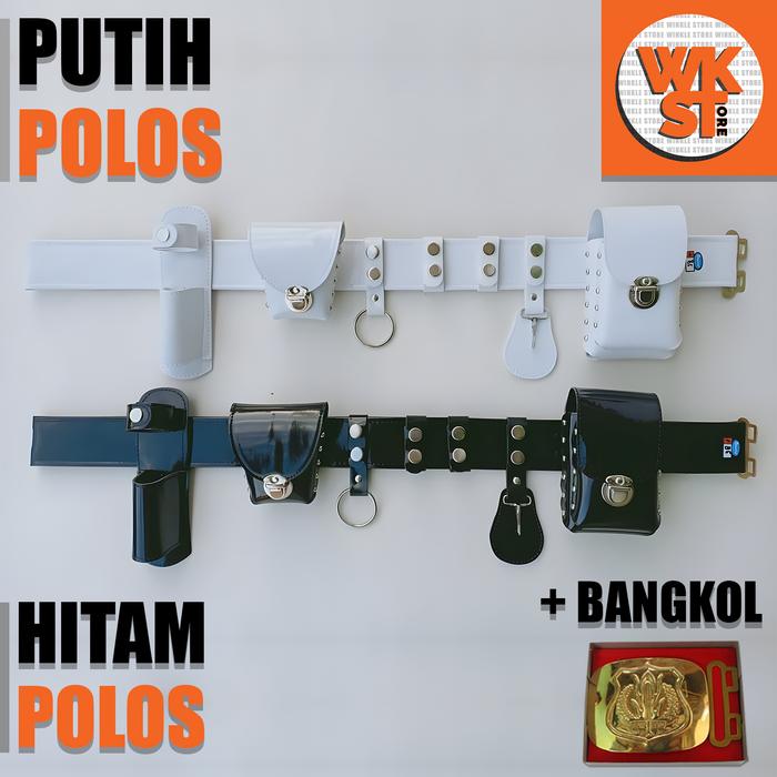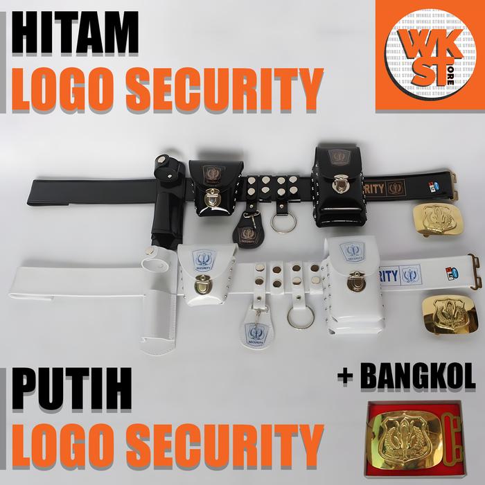 KOPEL SABUK SECURITY SATPAM LENGKAP DAN KEPALA BANGKOL SATU SET-KS01 - PUTIH LOGO, 80 CM