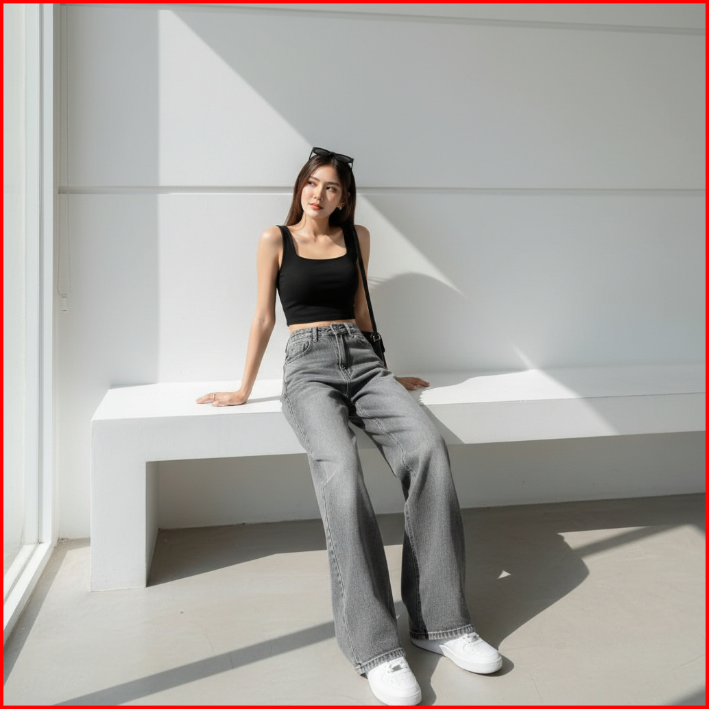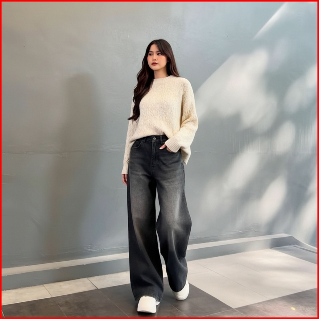 Celana Jeans Premium Kekinian Celana Highwaist Baggy Jeans Wanita Loose Retro Gombrong