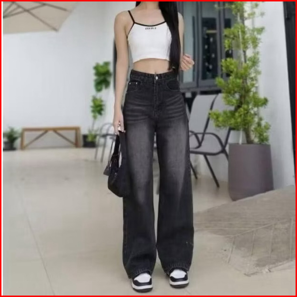Celana Highwaist Loose Whisker Skena Highwaist Baggy Jeans Wanita Celana Jeans Gombrong Oversize Jeans Hangover K