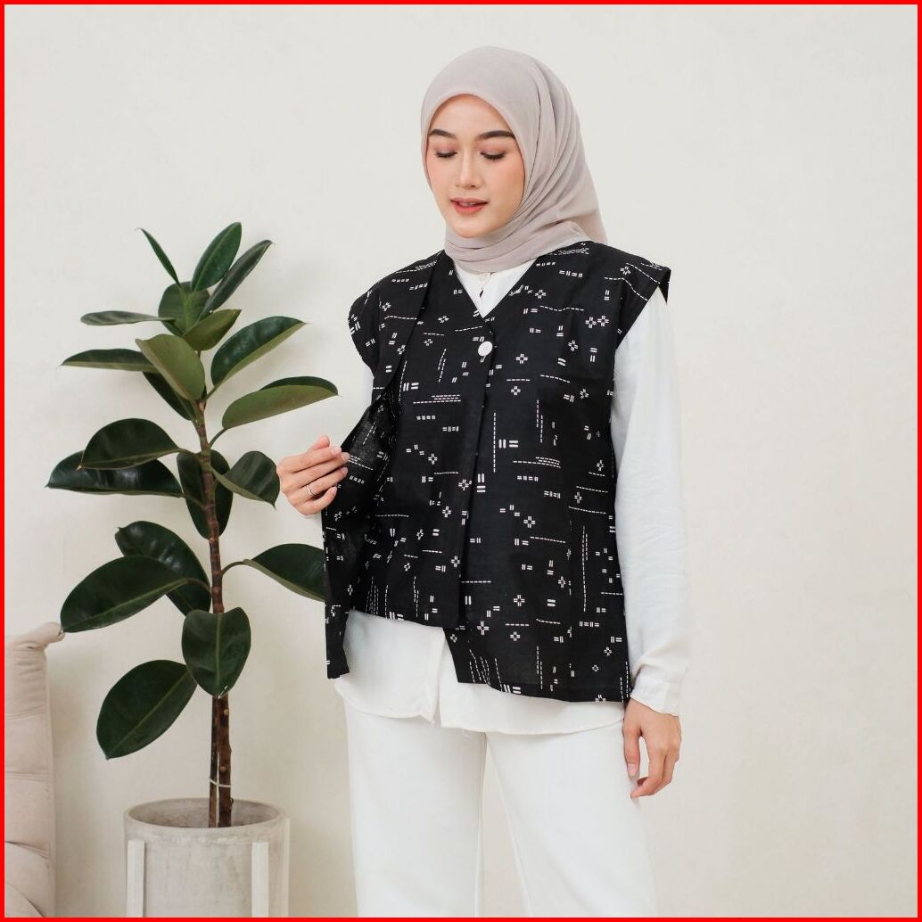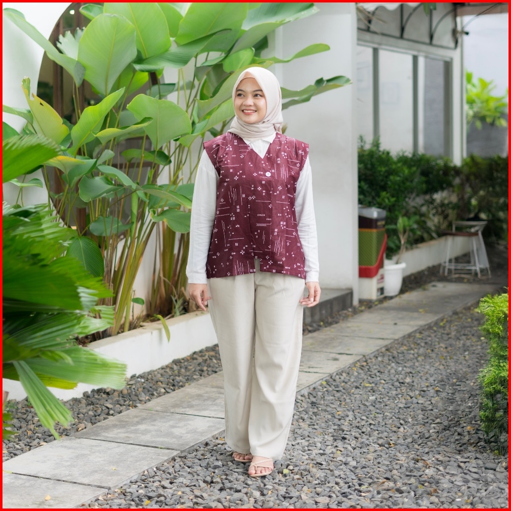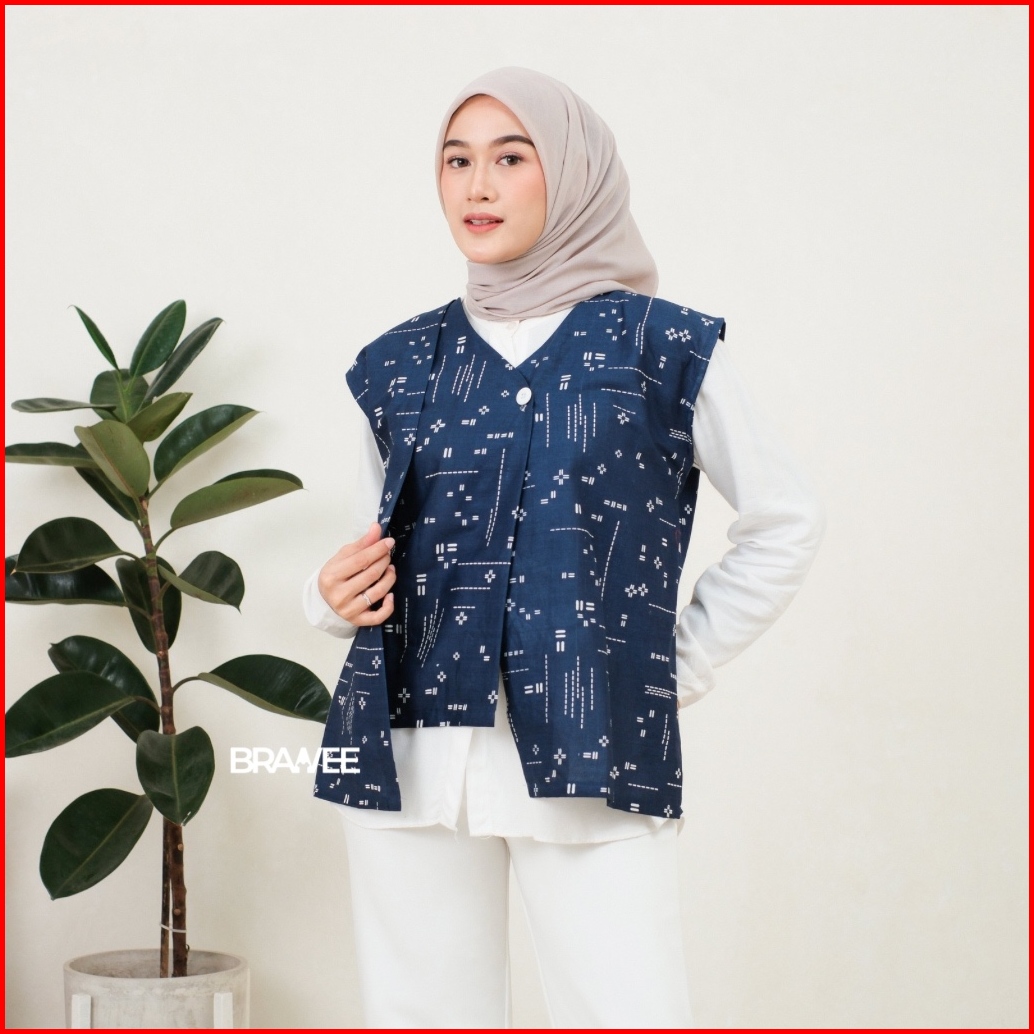 Brawee Vest Outer Rompi Batik V Neck Motif Katulistiwa