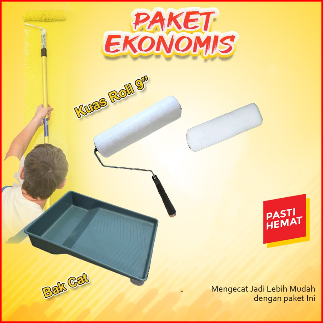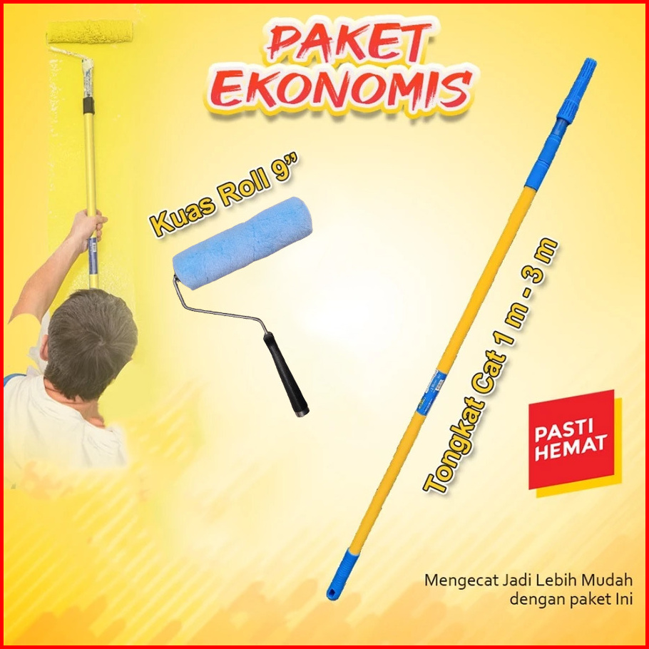 Paket Ekonomis Alat Cat Tongkat Kuas Roll Dan Bak Cat Murah Promo Kuas Roll Bak Cat Extension
