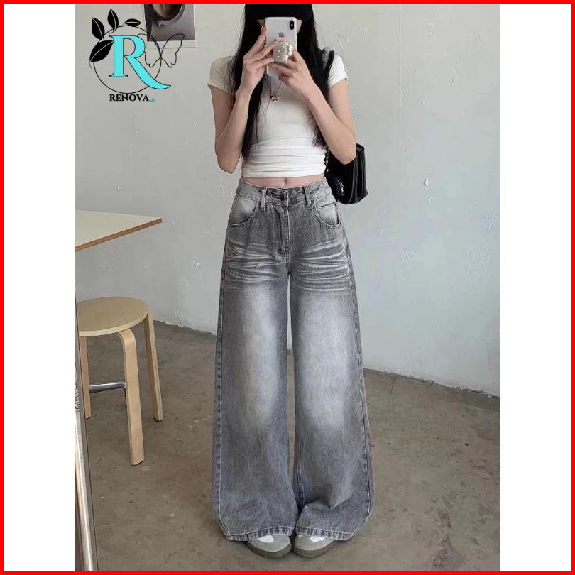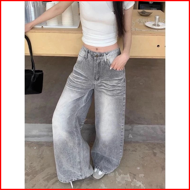 Lulu Abu-abu Kulot Highwaist Celana Panjang Wanita-baggy Jeans Wanita--goresan Halus Dan Jelas