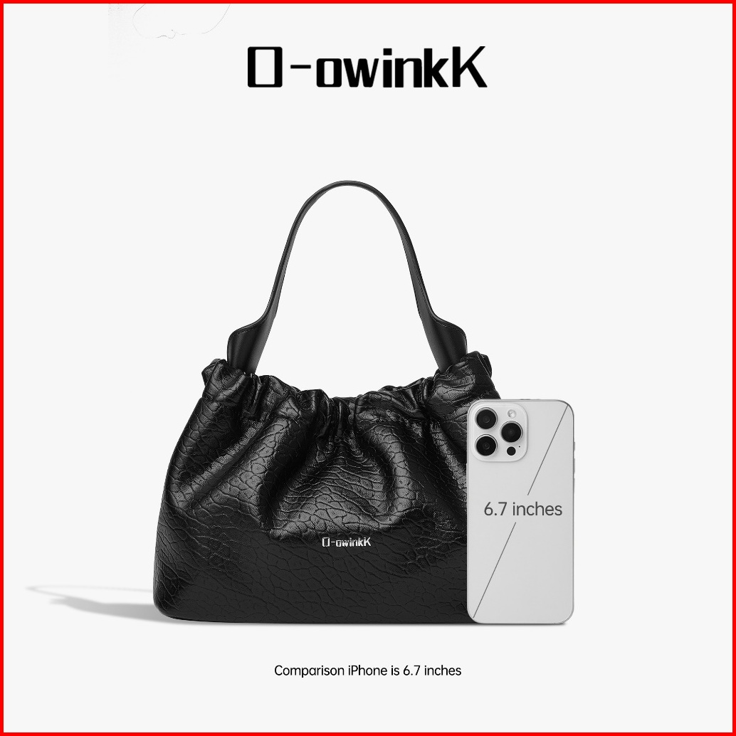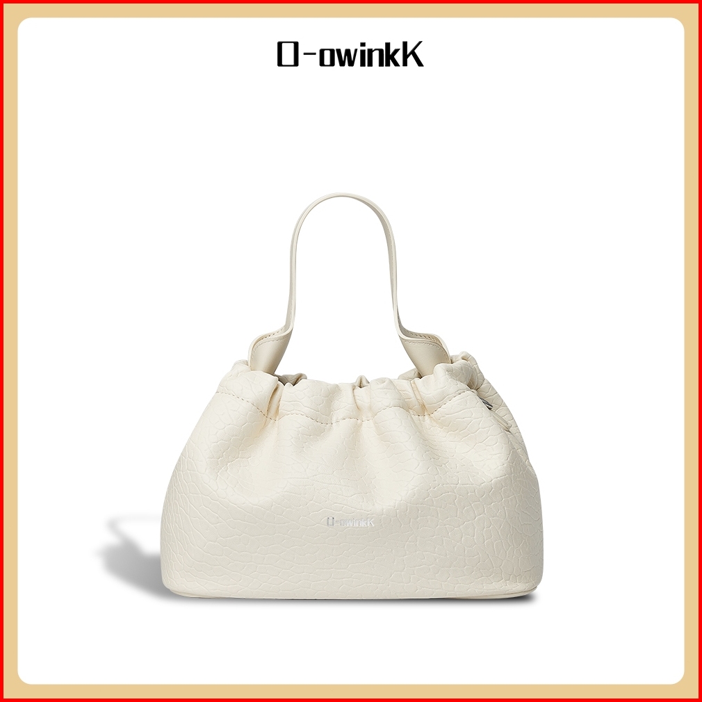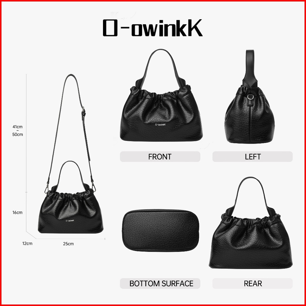 O-owinkk Tas Ember Wanita Lembut Motif Litchi Garis Selempang Versatile Trendy