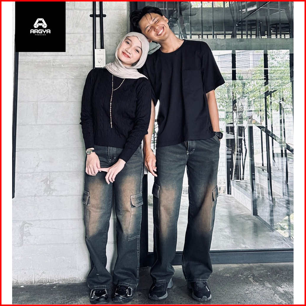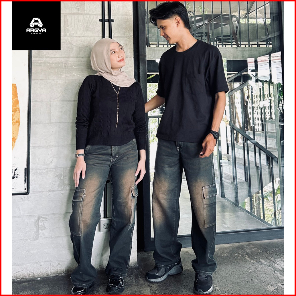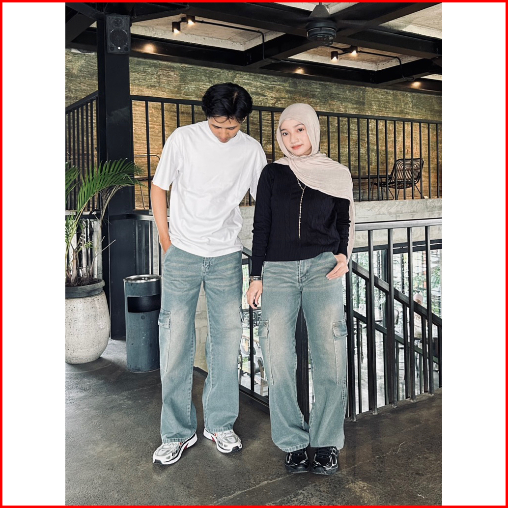 Celana Highwaist Cargo Jeans Celana Kulot Jeans Korean Baggy Vintage Retro