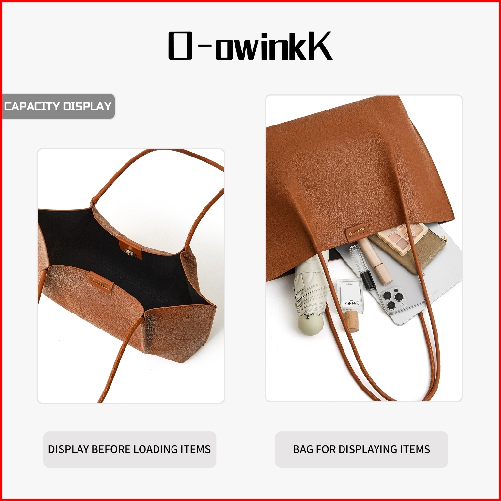O-owinkk Totebag Wanita Kulit Pu Kapasitas Besar Gaya Minimalis Cocok Untuk Berbelanja Perjalanan Kerja
