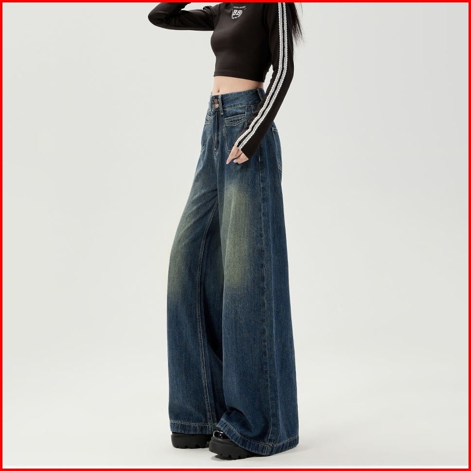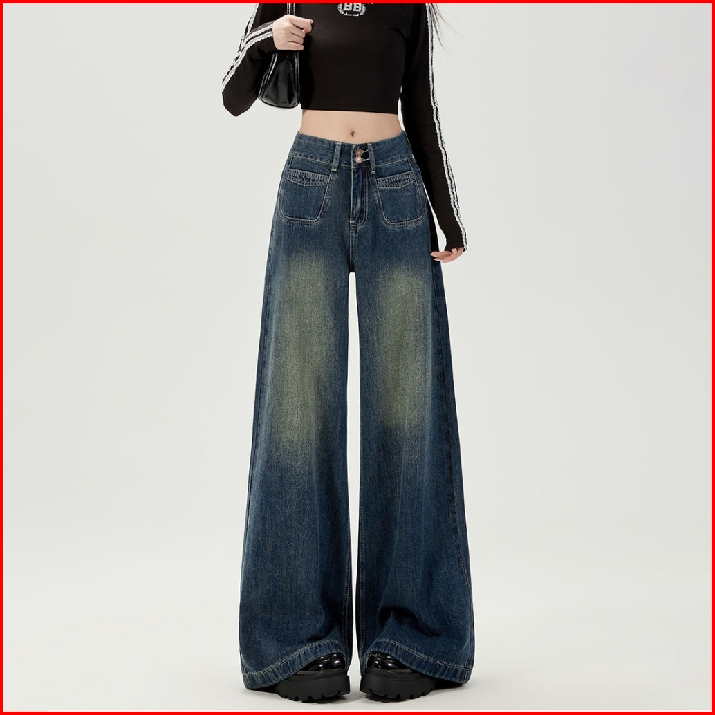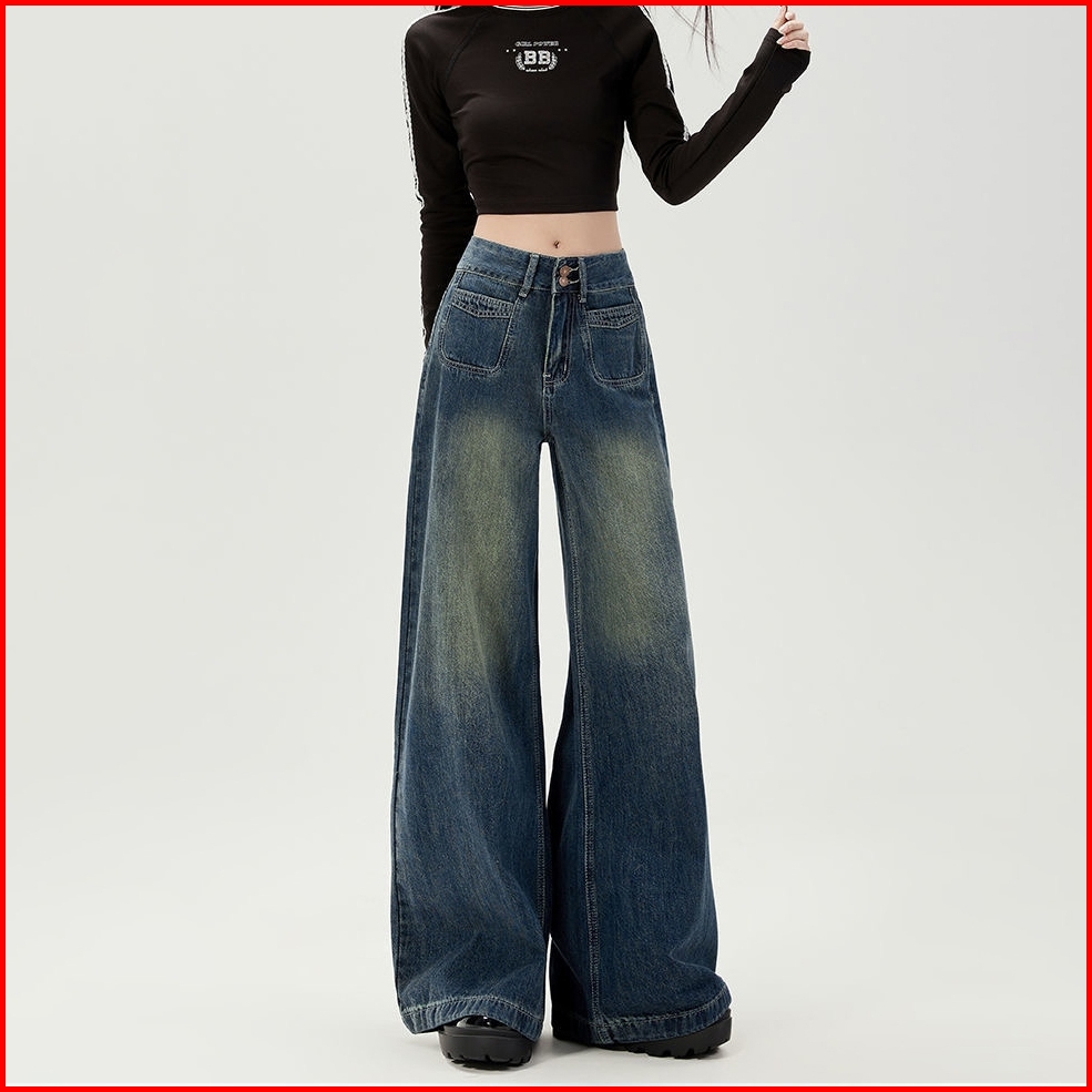 Wanita Idcelana Vintage Jeans Wanita Ootd Loose Jins Celana Jeans Panjang Wanita Celana Denim Kulot Wanita