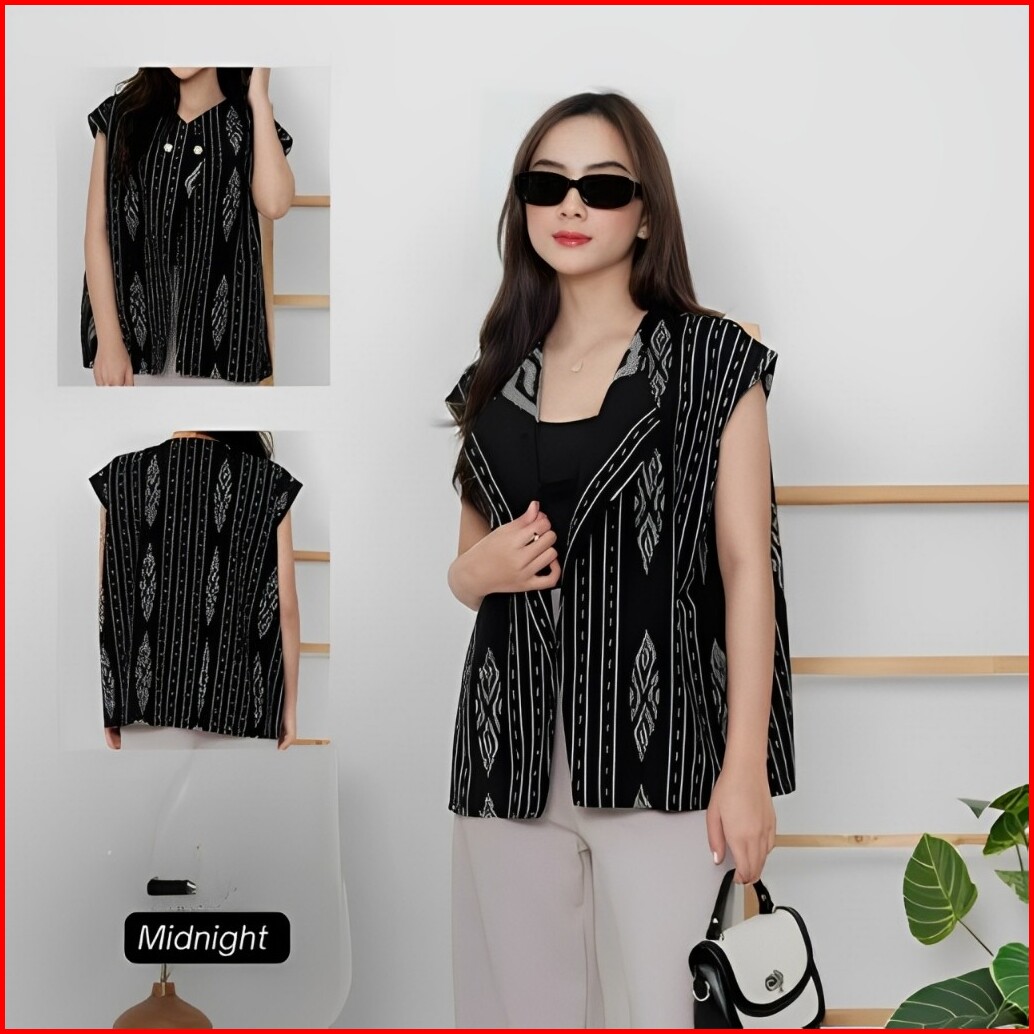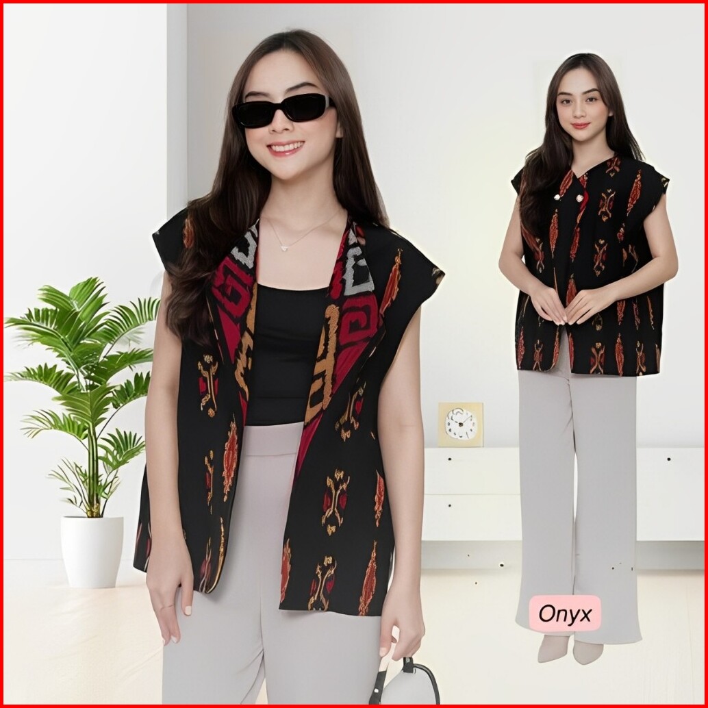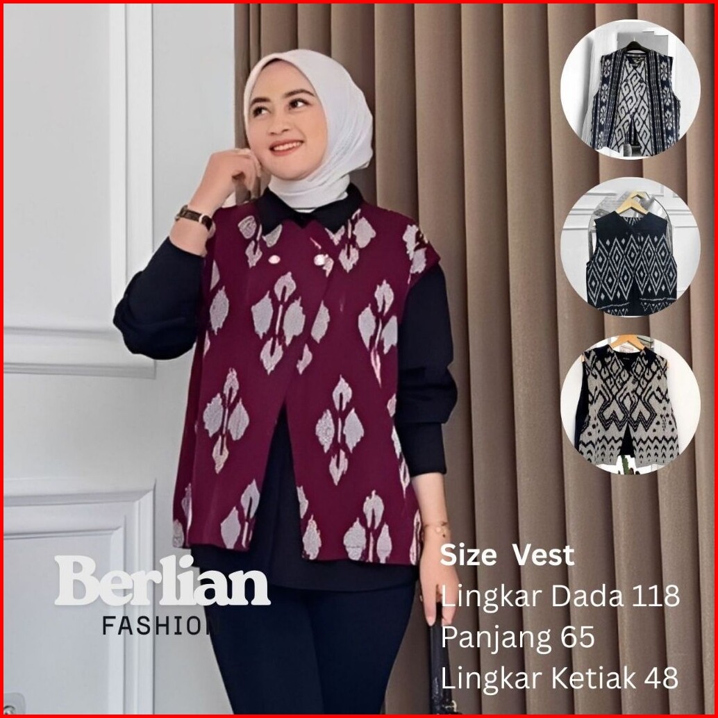Vest Tenun Etnik Wanita Outer Batik Modern Elegan Rompi Tenun Kondangan Dan Casual