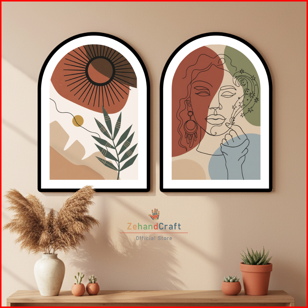 Zehandcraft - Hiasan Dinding Aesthetic Abstrack Botanical Hiasan Ruang Tamu Gaya Arch Shape