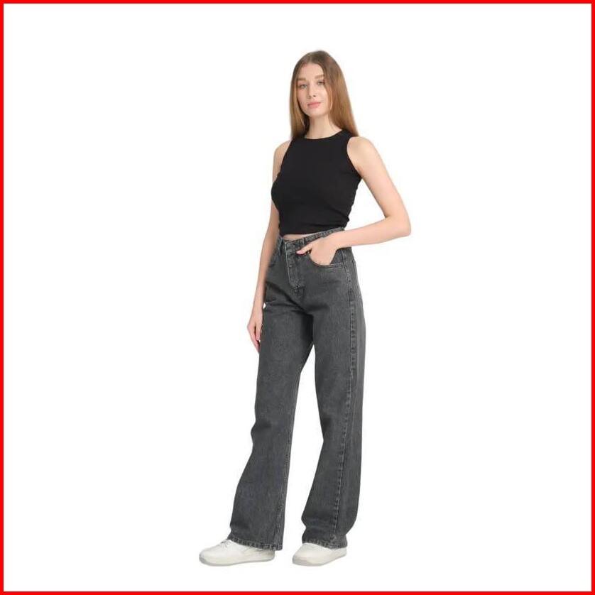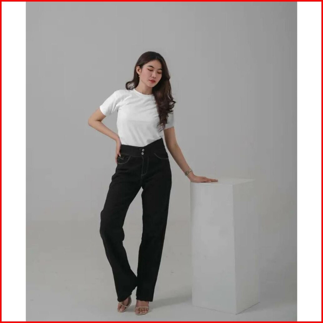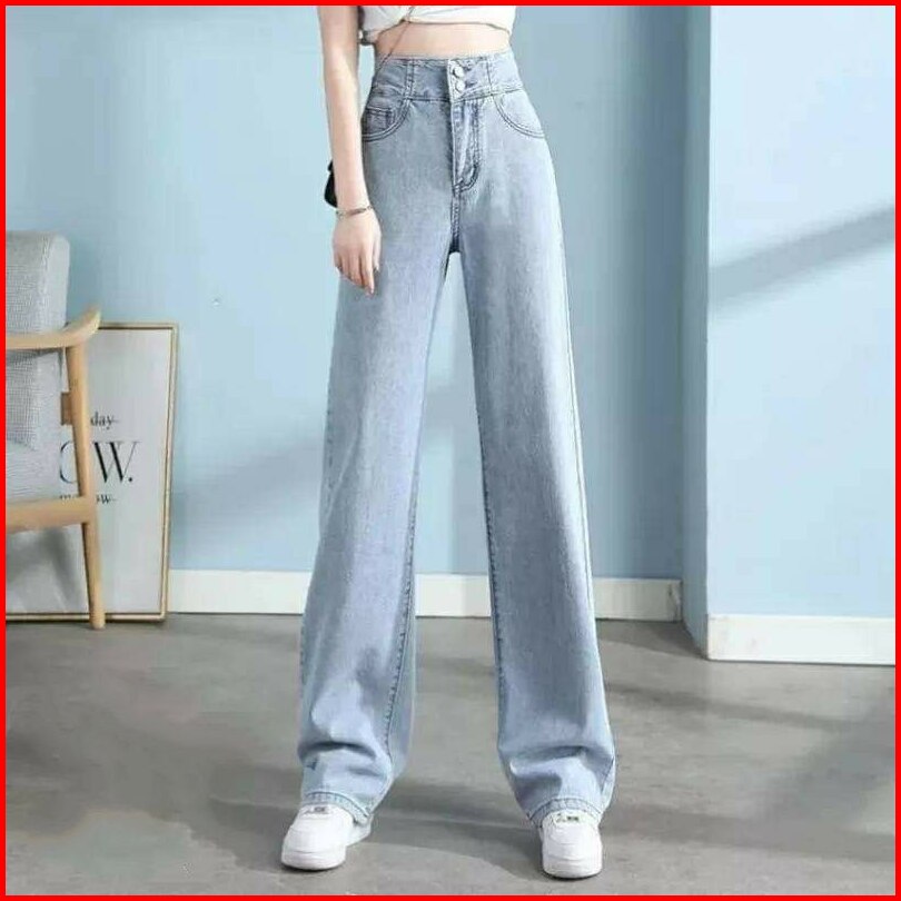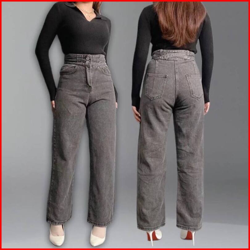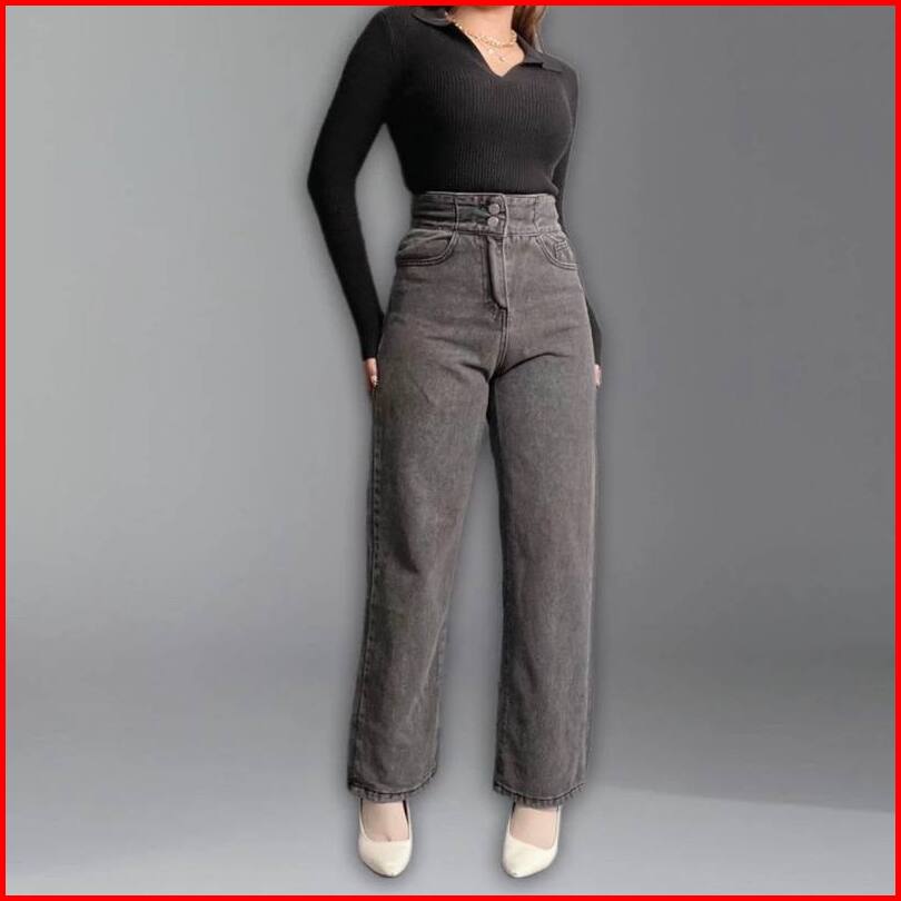 Celana Panjang Highwaist Kulot Jeans Wanita J183 Double Button 2 - Highwaits Loose Jeans - Celana Kulot Silang Premium