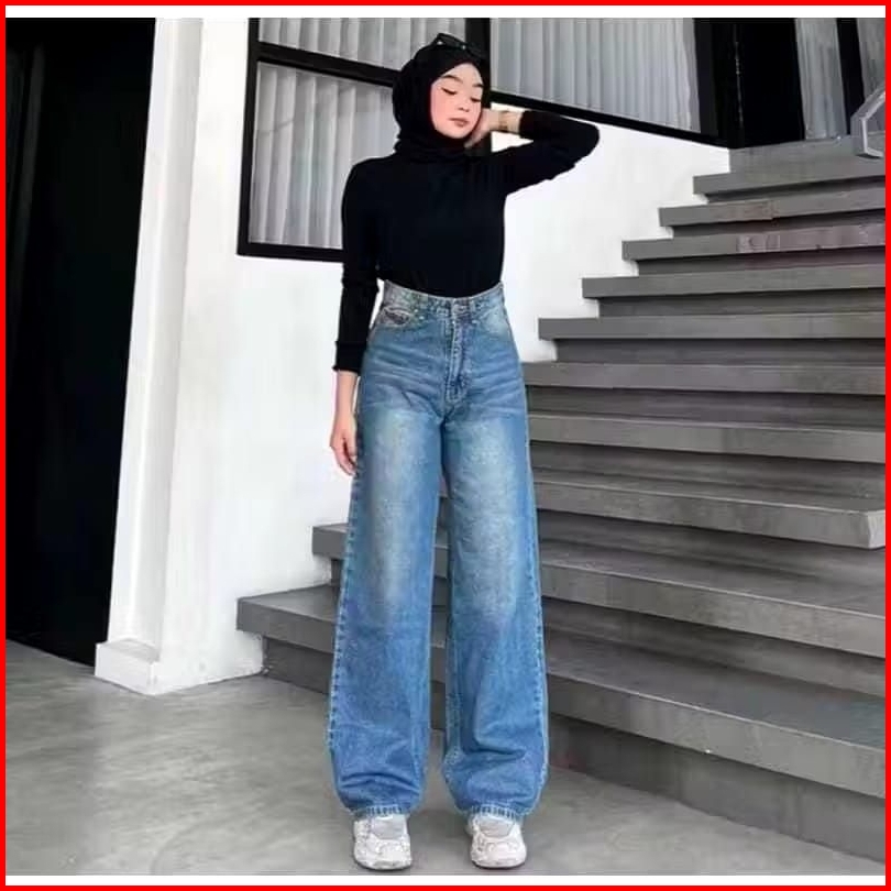 Celana Jeans Baggy Wisker Gombrong - Celana Jeans Wide Leg Korean Style - Celana Jeans Wisker Oversize Jumbo Gomb