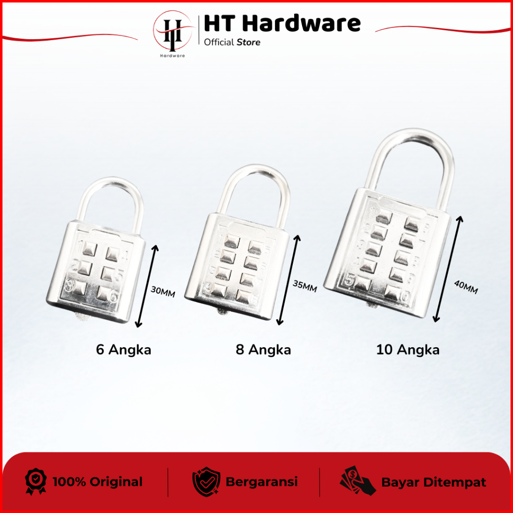 Gembok Angka Password Ht Hardware Kombinasi 6 8 10 Digit 30-40mm