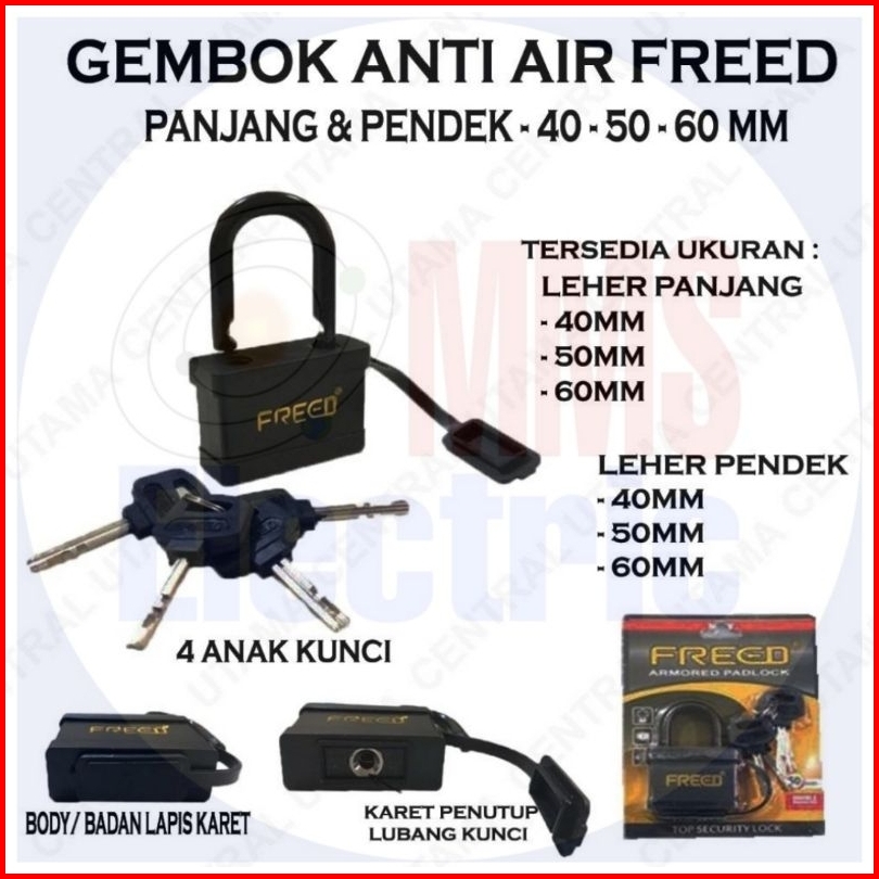 Gembok Anti Air Merk Freed Leher Pendek Panjang 40mm 50mm 60mm