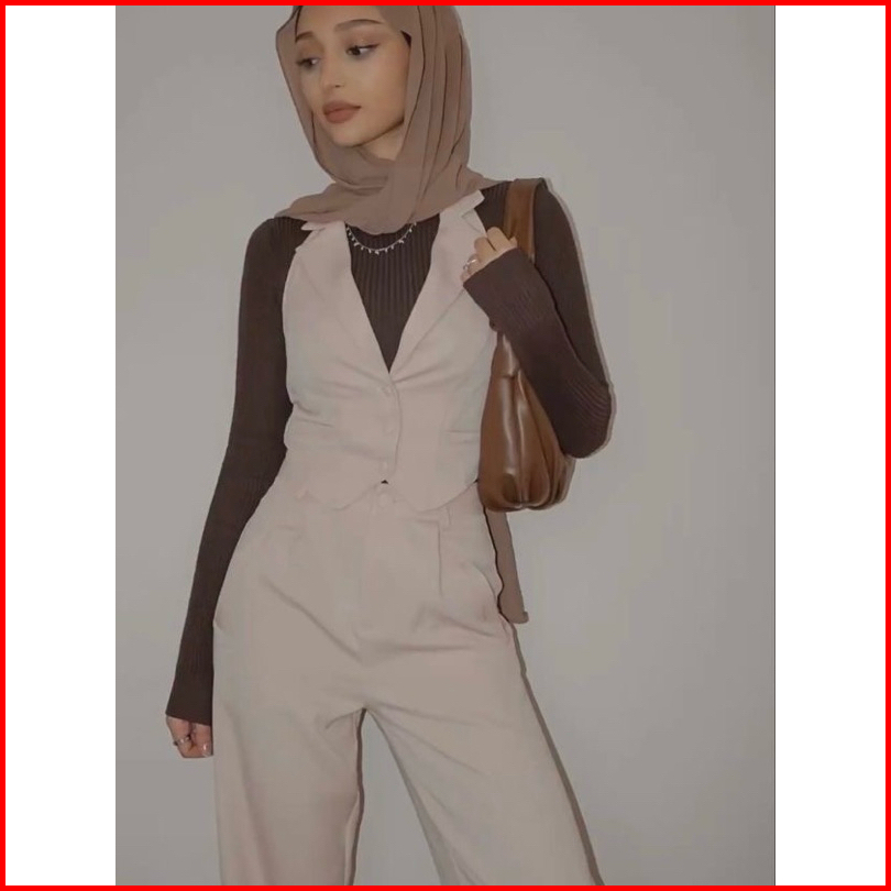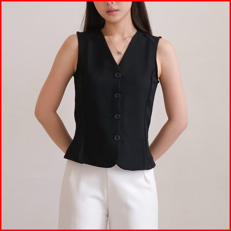 Vest Atasan Wanita Kekinian V Neck Tanpa Lengan Kekinian Korean Style