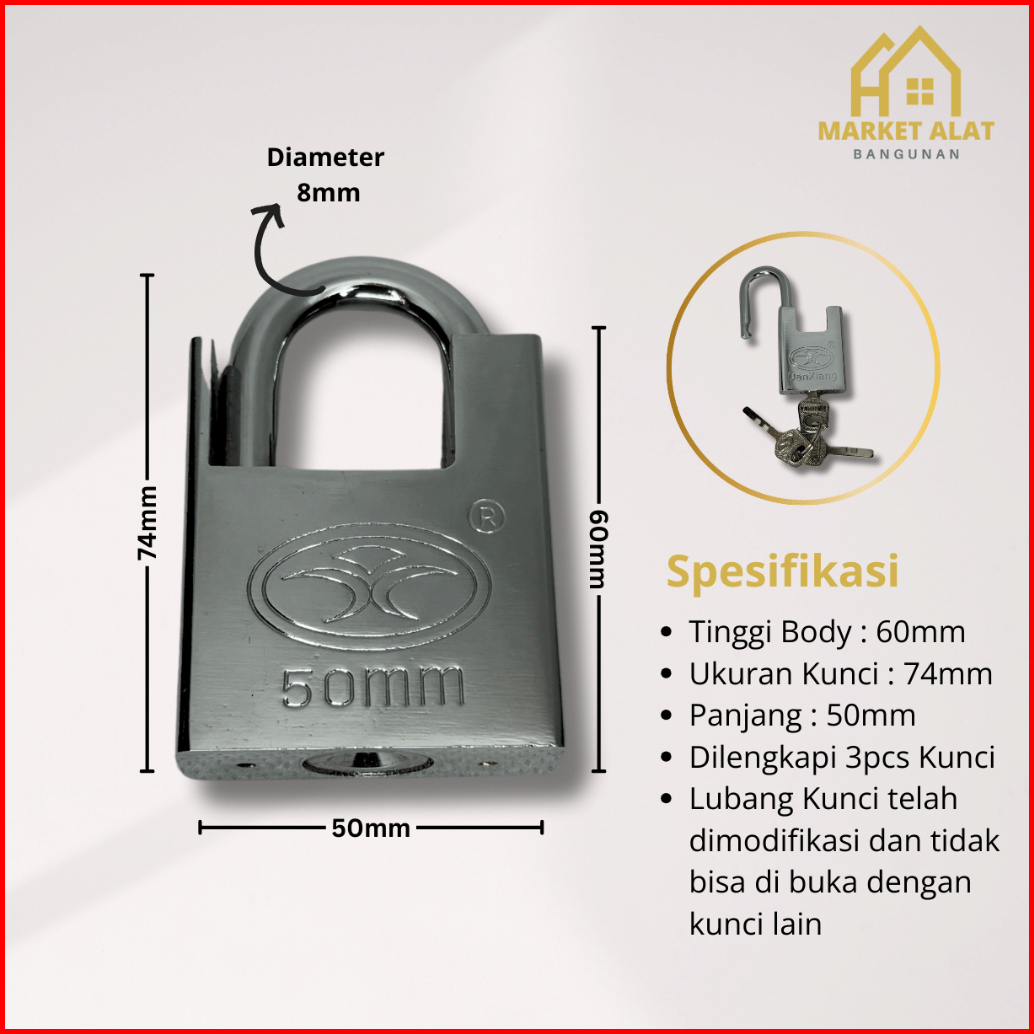 Gembok Jaket Stainless 50 Mm Anti Potong Kunci Gembok Rumah Pagar Pintu Gerbang 50mm Anti Cut