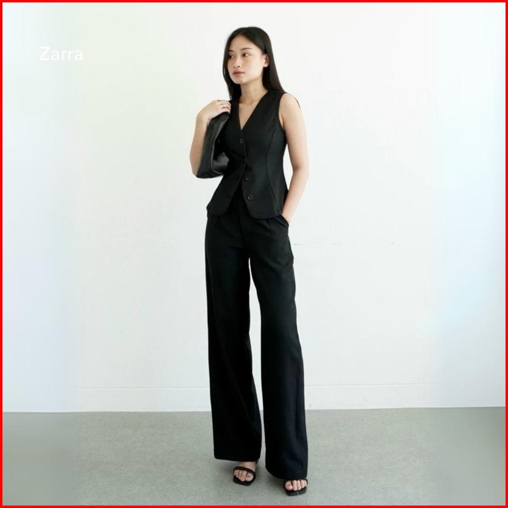 Zarra - Vest Hitam Wanita Rompi Outer Terbaru Kekinian Vest Tanpa Lengan Polos Korean Style