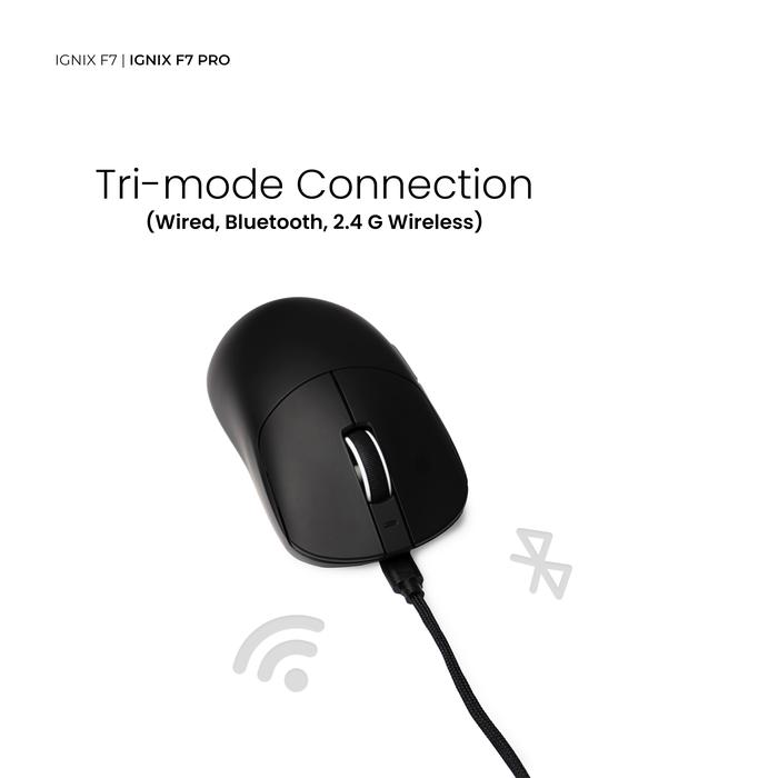 VORTEXSERIES IGNIX SERIES F7 MOUSE | ULTRA LIGHT WIRELESS TRI MODE GAMING MOUSE PIXART PAW 3311 / 3395 PRO - F7, PUTIH