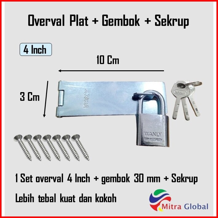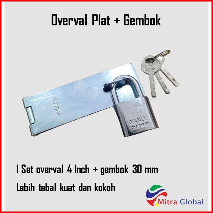 Paket Gembok Nekel 30 Mm Cantolan Gembok 4 Inch Kunci Engsel Gembok Overval Overpale Plat Tebal