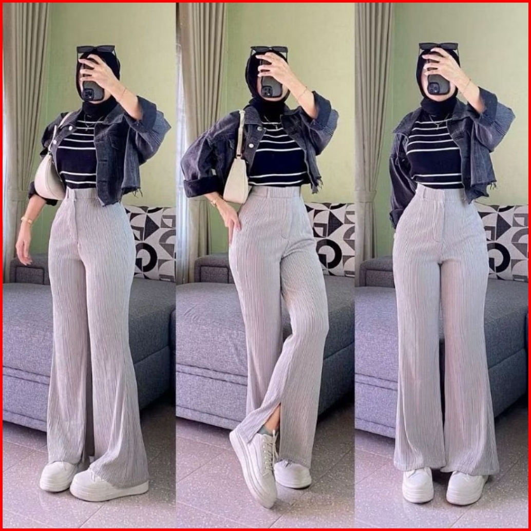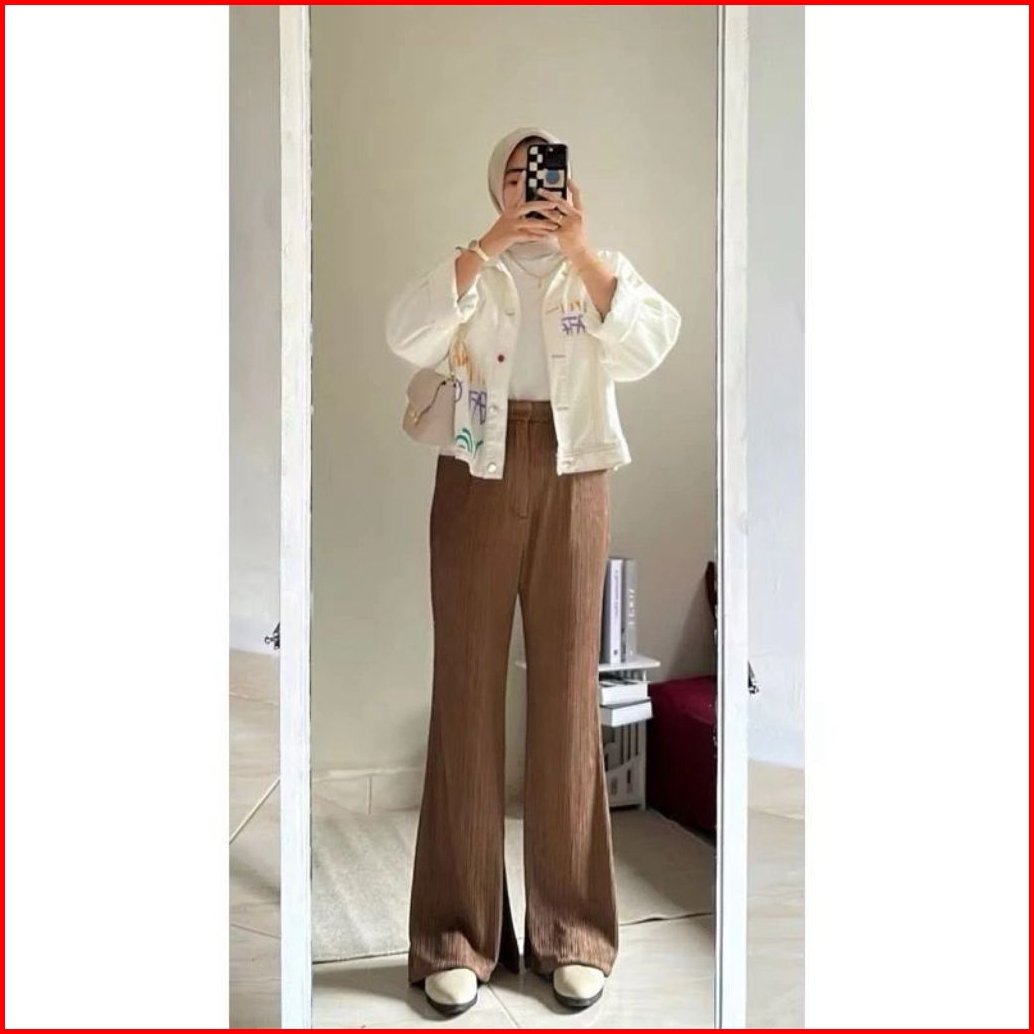 Yulian - Celana Cutbray Knit Wanita Highwaist Premium Celana Wanita Kekinian