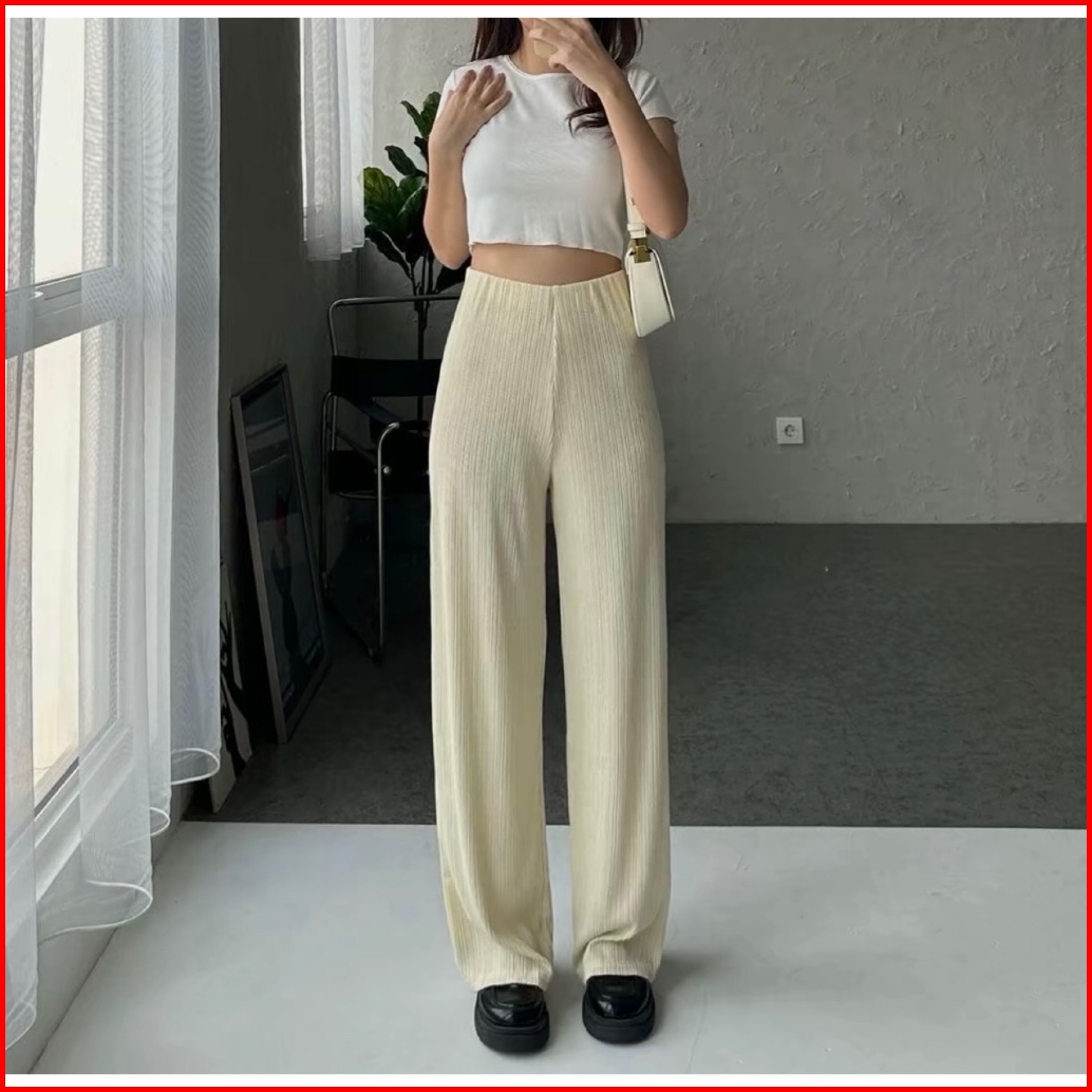 Seine Knit Pleats Pants - Kulot Knit Salur Highwaist Premium Korean Look - Celana Panjang Wanita Kulot Highwaist Korean