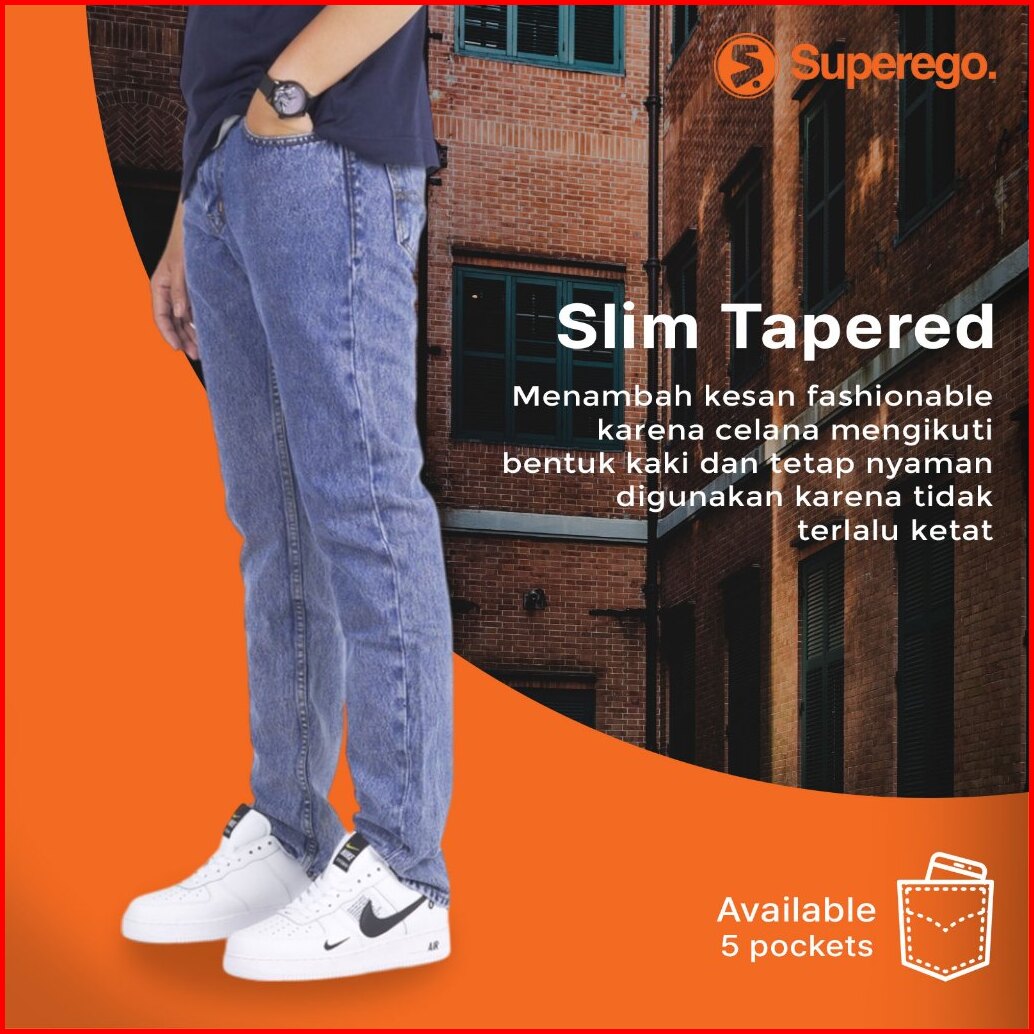 Superego Celana Jeans Pria Size 28-38 Slim Tapered Long Pants Denim Washed Snow Blue Sbt04b