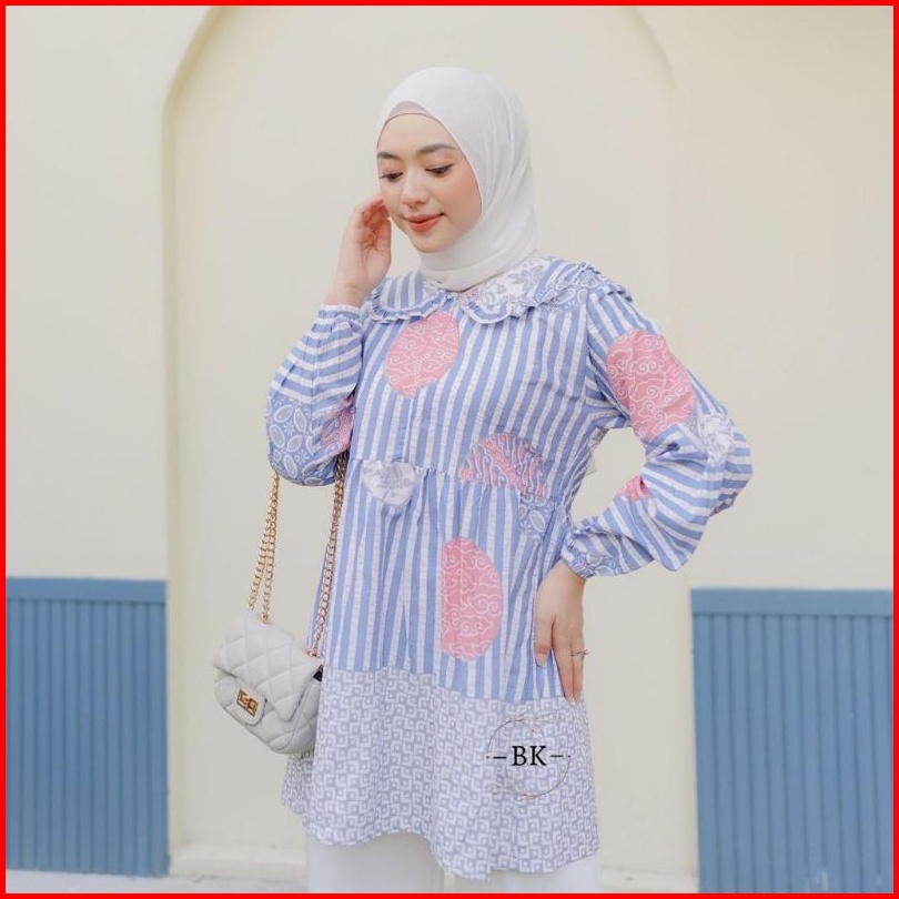 Blus Batik Wanita Modern Softcolor Motif Koin Busui Friendly Atasan Kerja M-l-xl-xxl