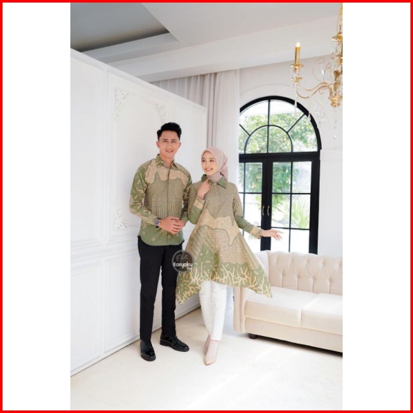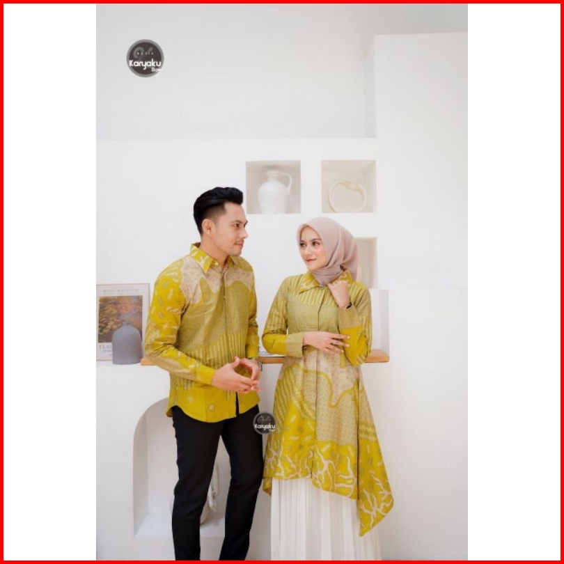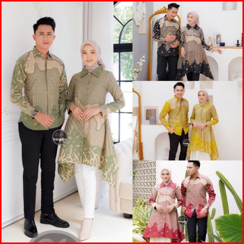 Atasan Batik Couple Premium Modern Tunik Kemeja Lengan Panjang Busui Friendly Motif Luna Atasan Kerja Seragam Kerja M-l-