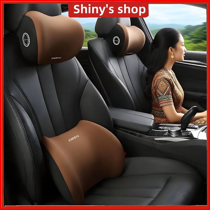 Bantal Leher Mobil Sandaran Leher Penopang Busa Memori Set Bantal Pinggang Bantal Leher Mobil Kualitas Kulit Premium Mew
