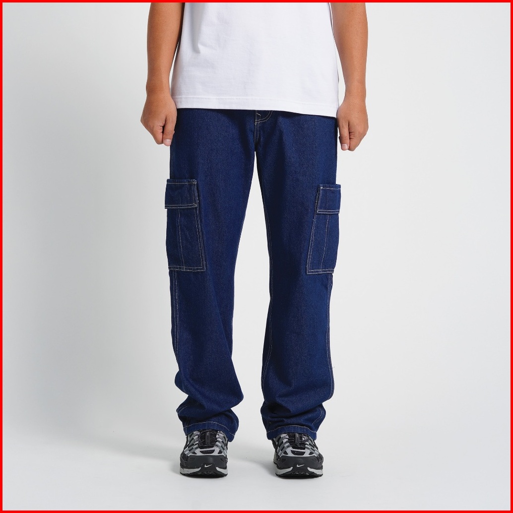 Superego Celana Cargo Pants Pria Jeans Reguler Standard Denim Washed Navy Scpdw01f