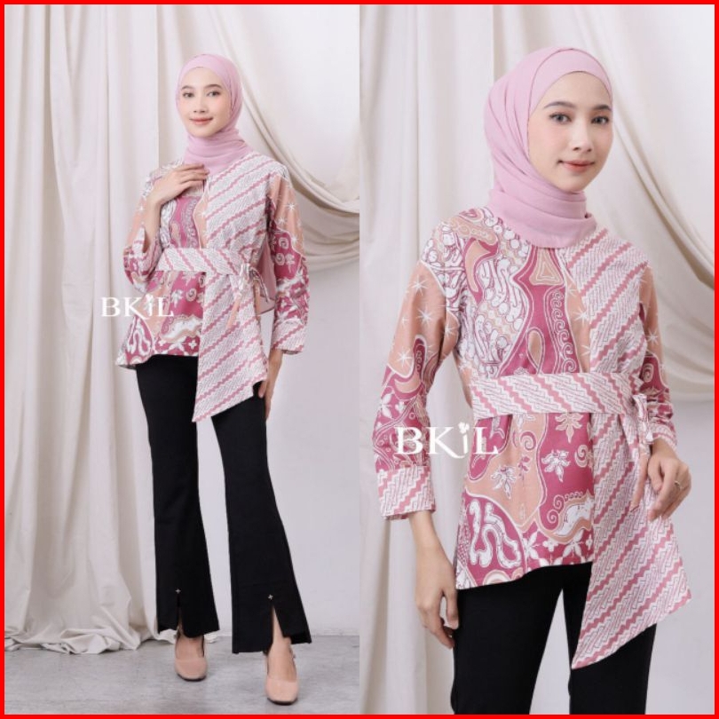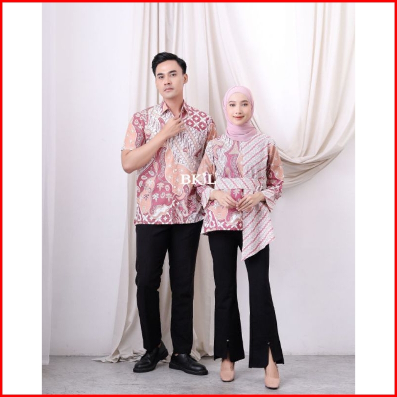 Atasan Batik Couple Blus Kemeja Hem Lengan Pendek Asimetris Design Katun Motif Kejora M-l-xl-xxl Seragam Kerja Atasan Ke