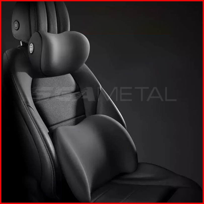 Seametal Bantal Mobil Mewah Sandaran Leher Punggung Big Memory Foam Kulit Premium Bantal Berkualitas Bantal Leher Mobil