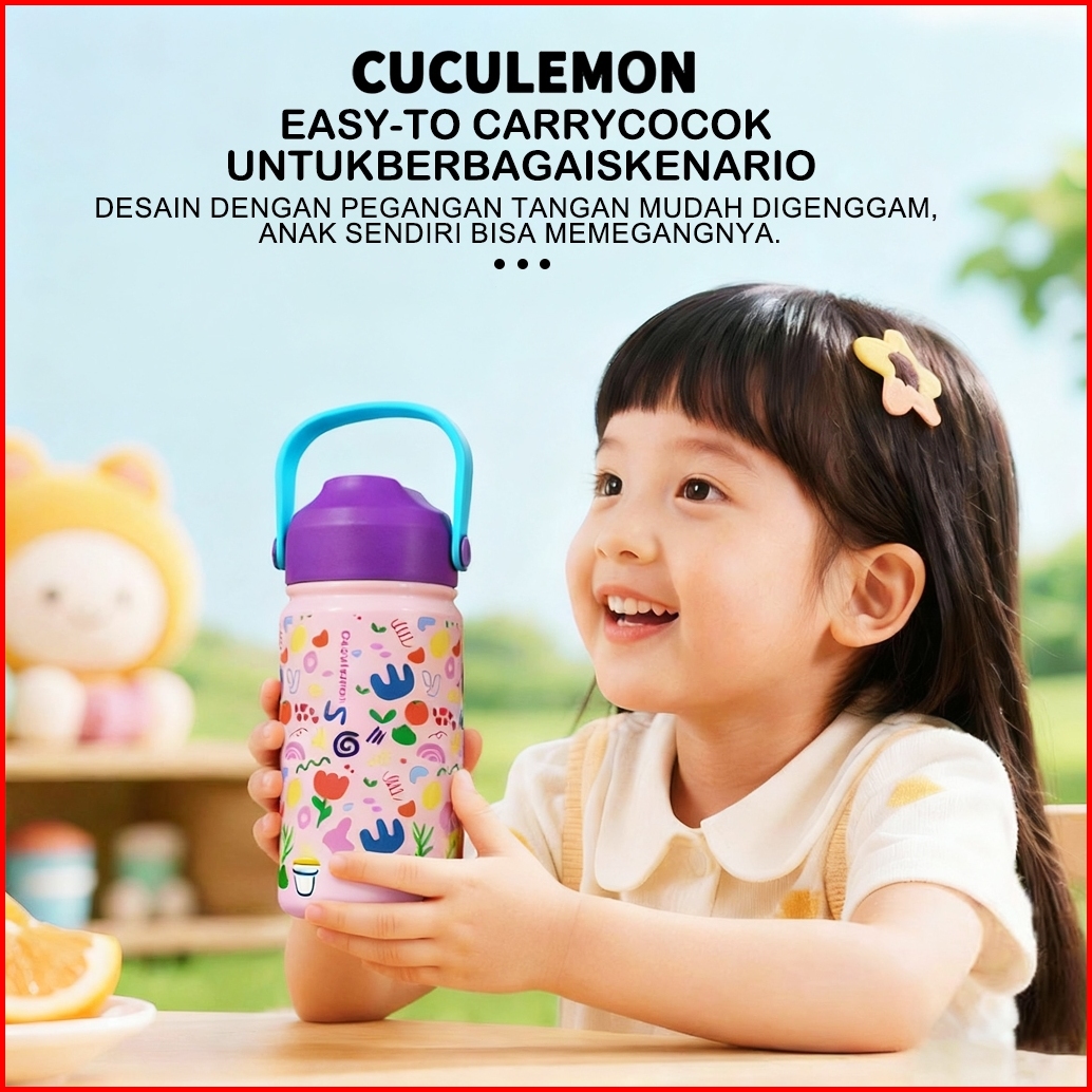 Cuculemon Tumbler Anak Sedotan 350ml Termos Stainless Steel Botol Minum Portable Tahan Panas Dingin
