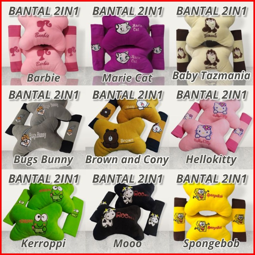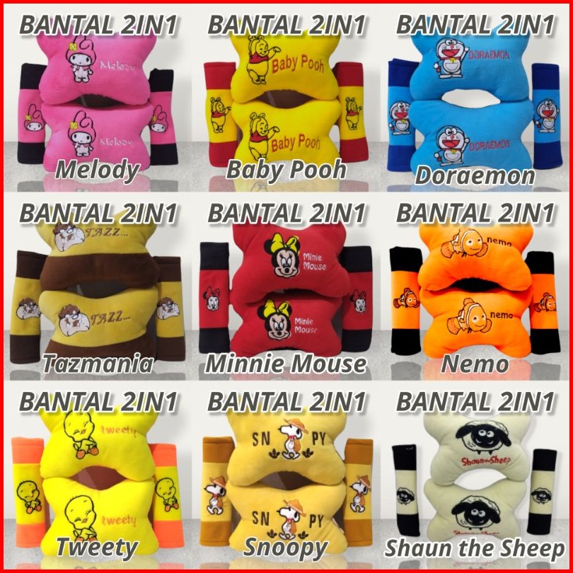 Headrest Car Set Bantal Mobil 2in1 Car Set Karakter Kartun Lucu